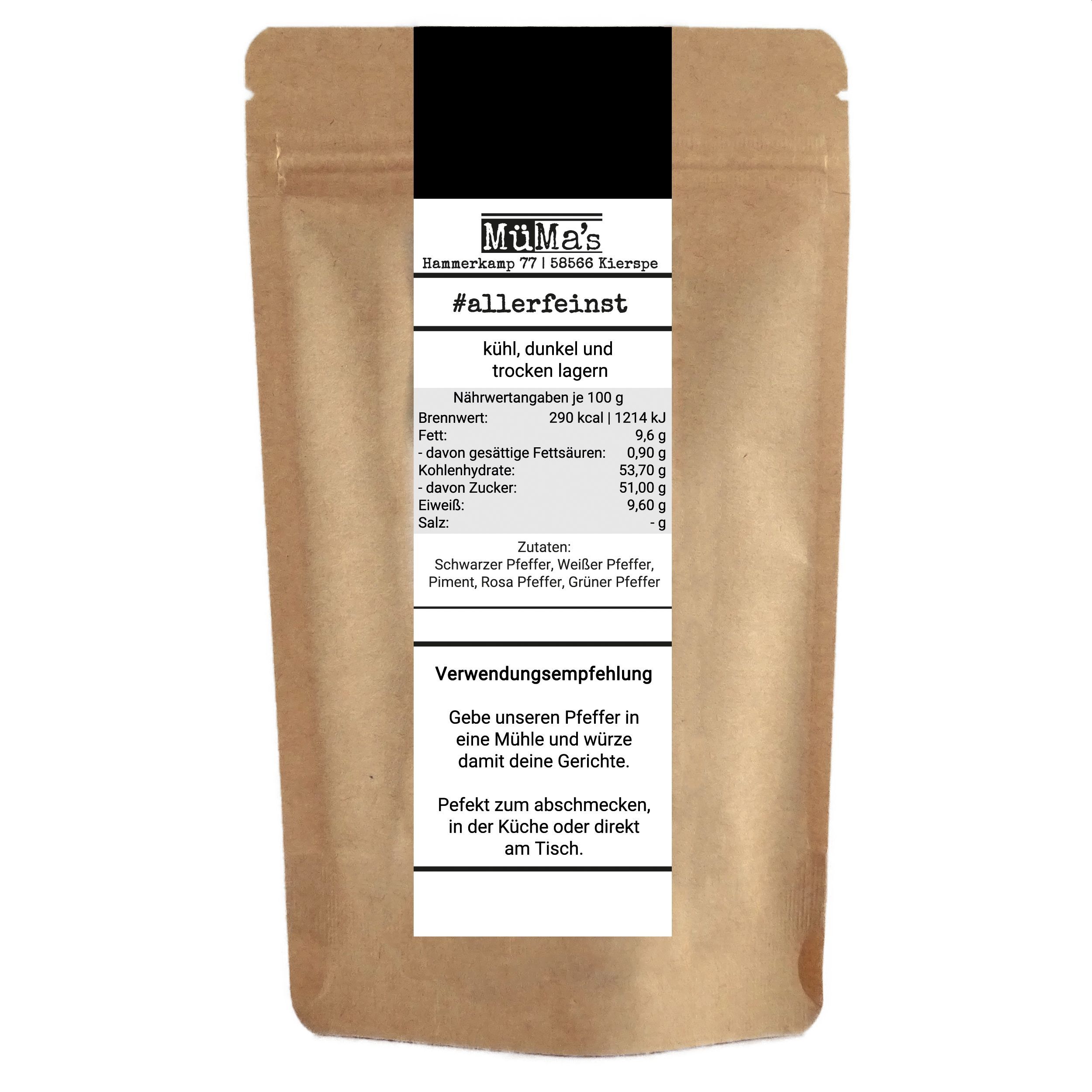 Bunter Pfeffer ganz - Premium 5 Pfefferkorn Mix für Pfeffermühle - 125g