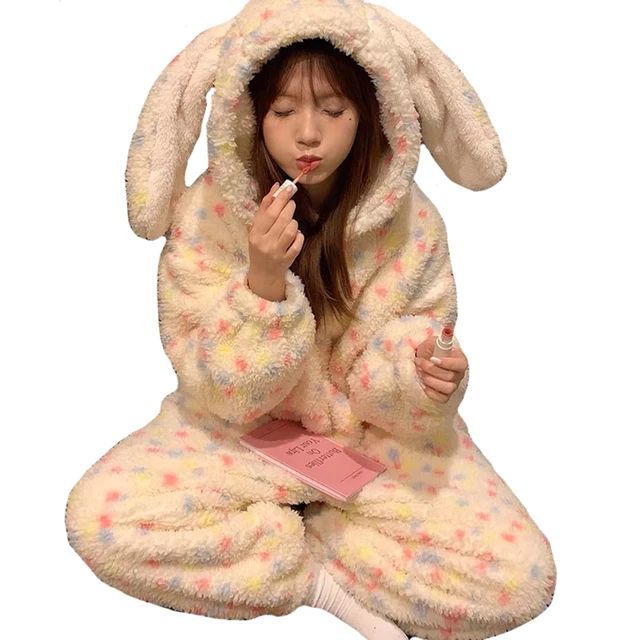 Bunter Punkte Hase Onesie Erwachsene Tier Cosplay Pyjamas Plusch Weihnachten