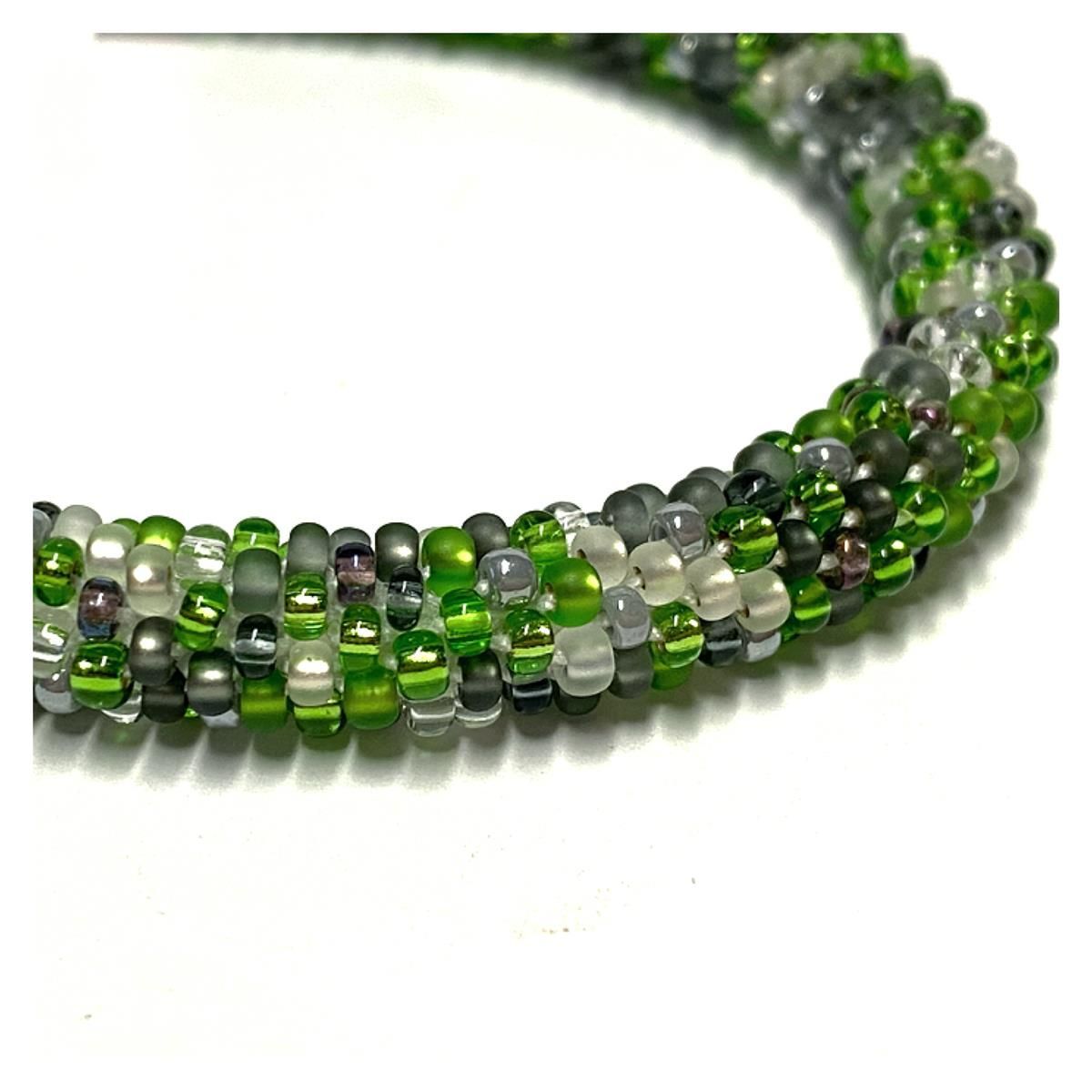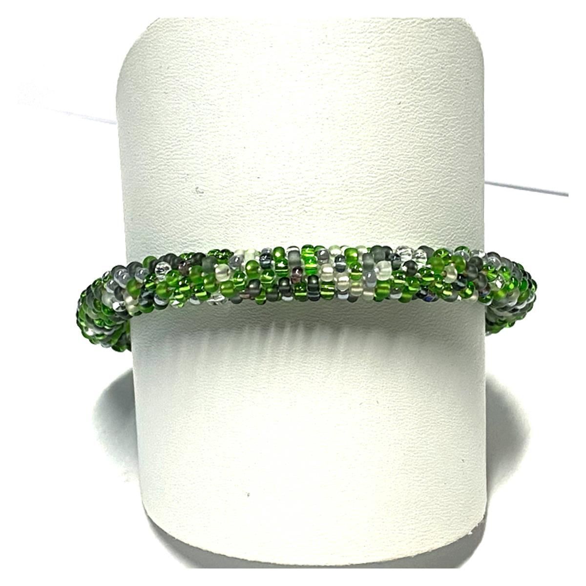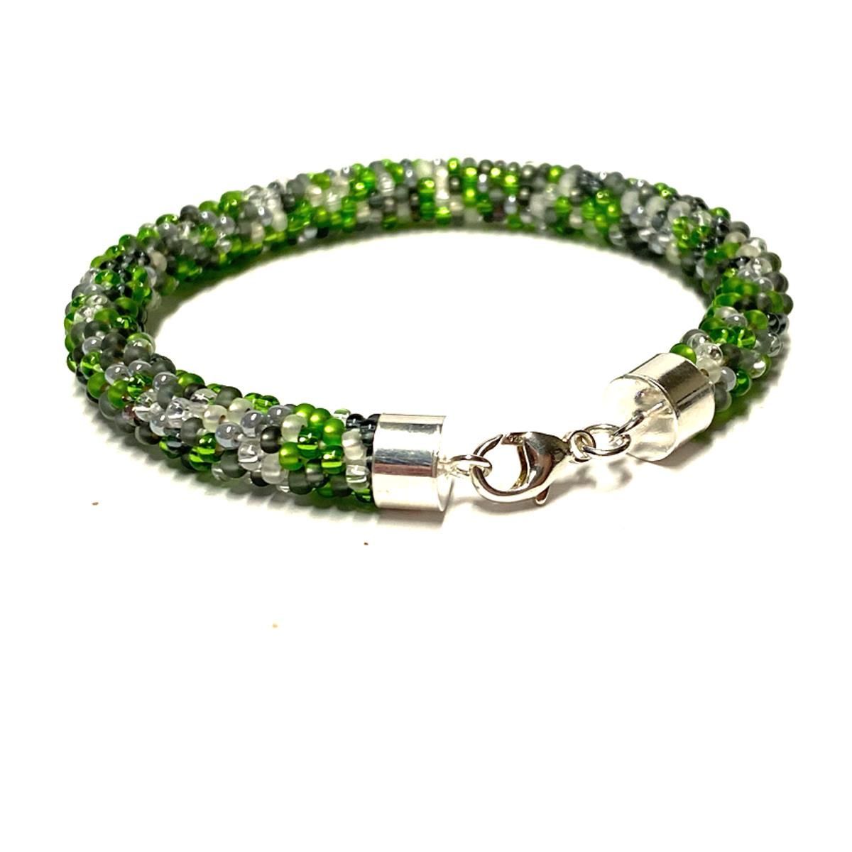 buntes Armband gehäkelt mit Glasperlen 925 Silber 20,5cm Handarbeit