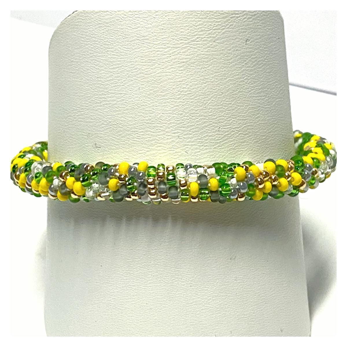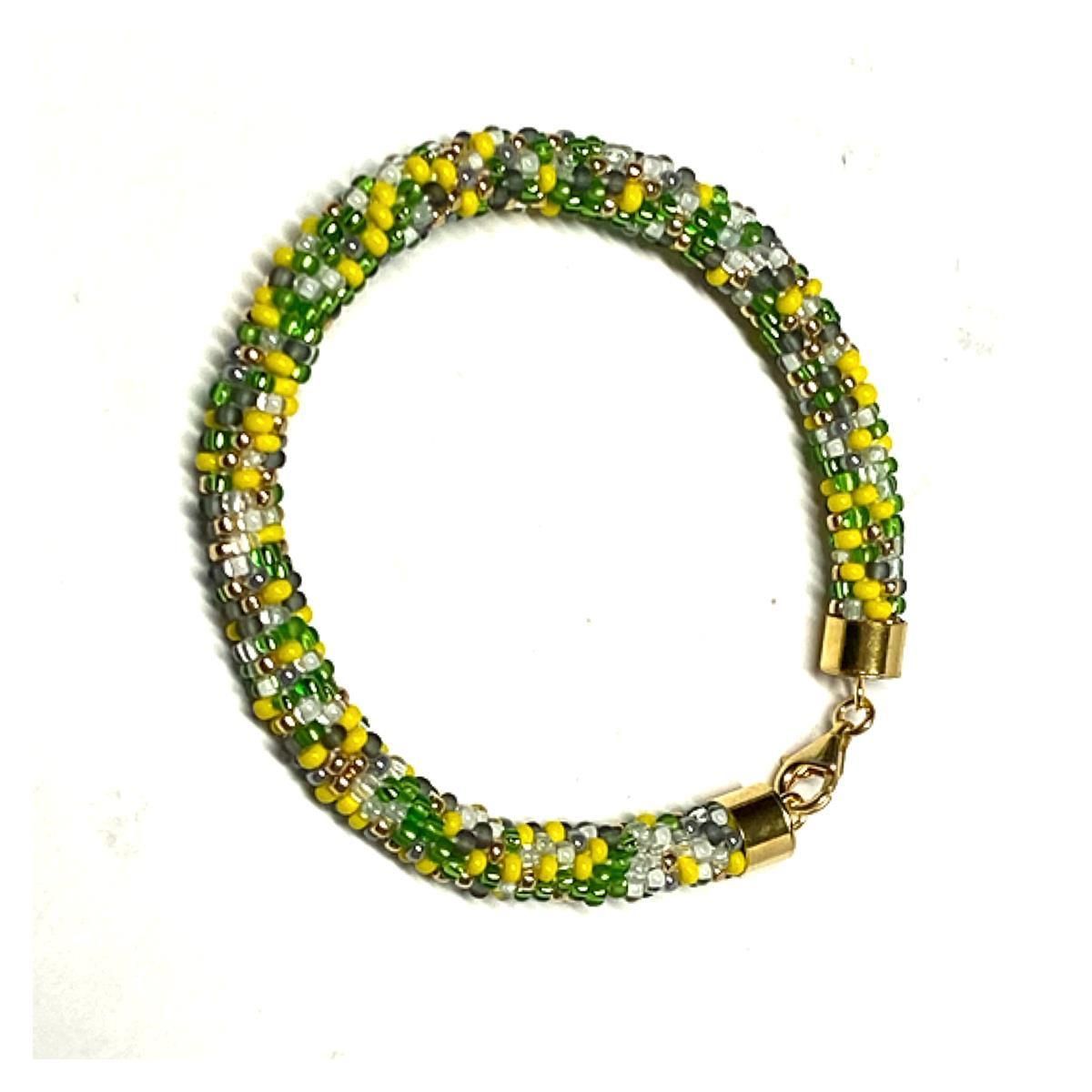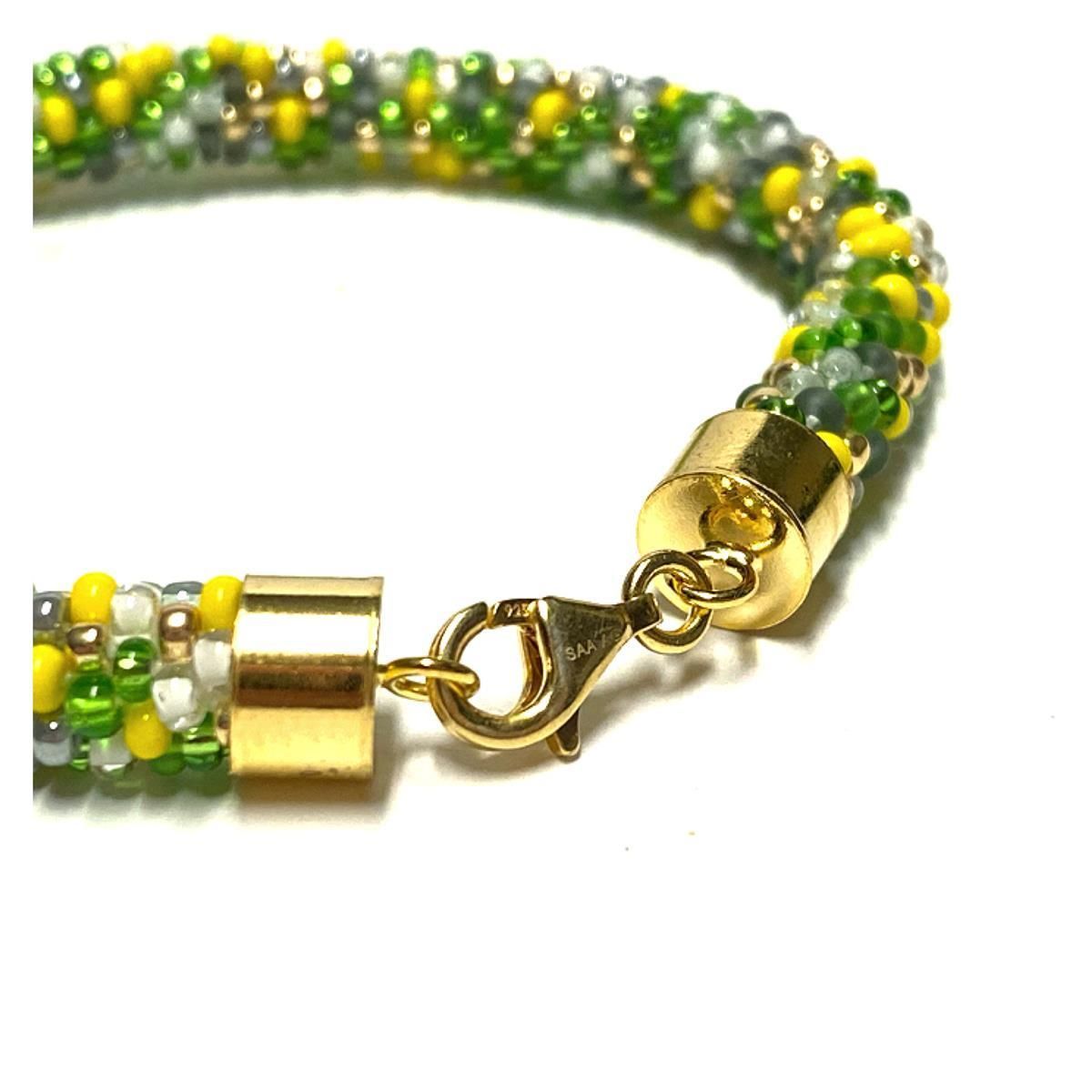 buntes Armband gehäkelt mit Glasperlen 925/- Sterling Silber vergoldet 21cm Handarbei