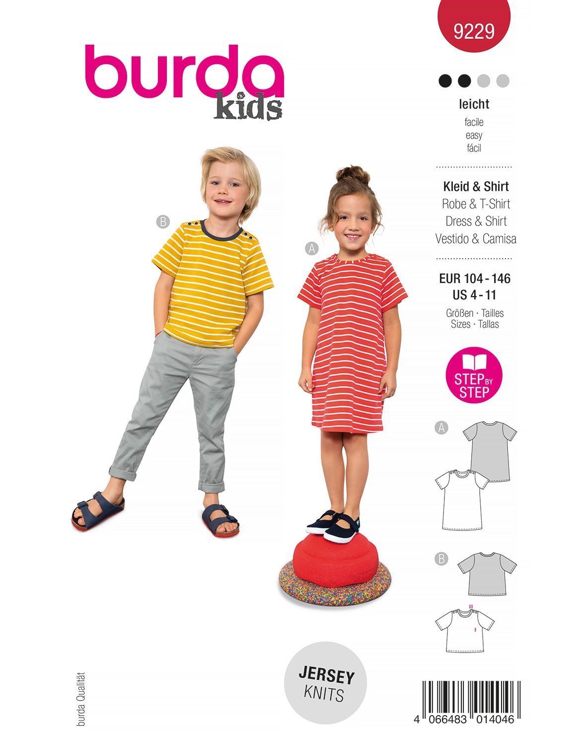burda Papier-Schnitt Kindershirt und Kleid #9229 Gr.104-146