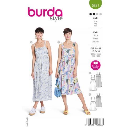 burda Papier-Schnitt Kleid mit Spitzenborten #5821 Gr.34-44