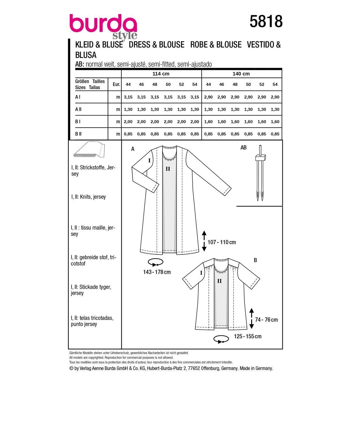 burda Papier-Schnitt Zweiteiler Kleid/ Bluse #5818 Gr.44-54