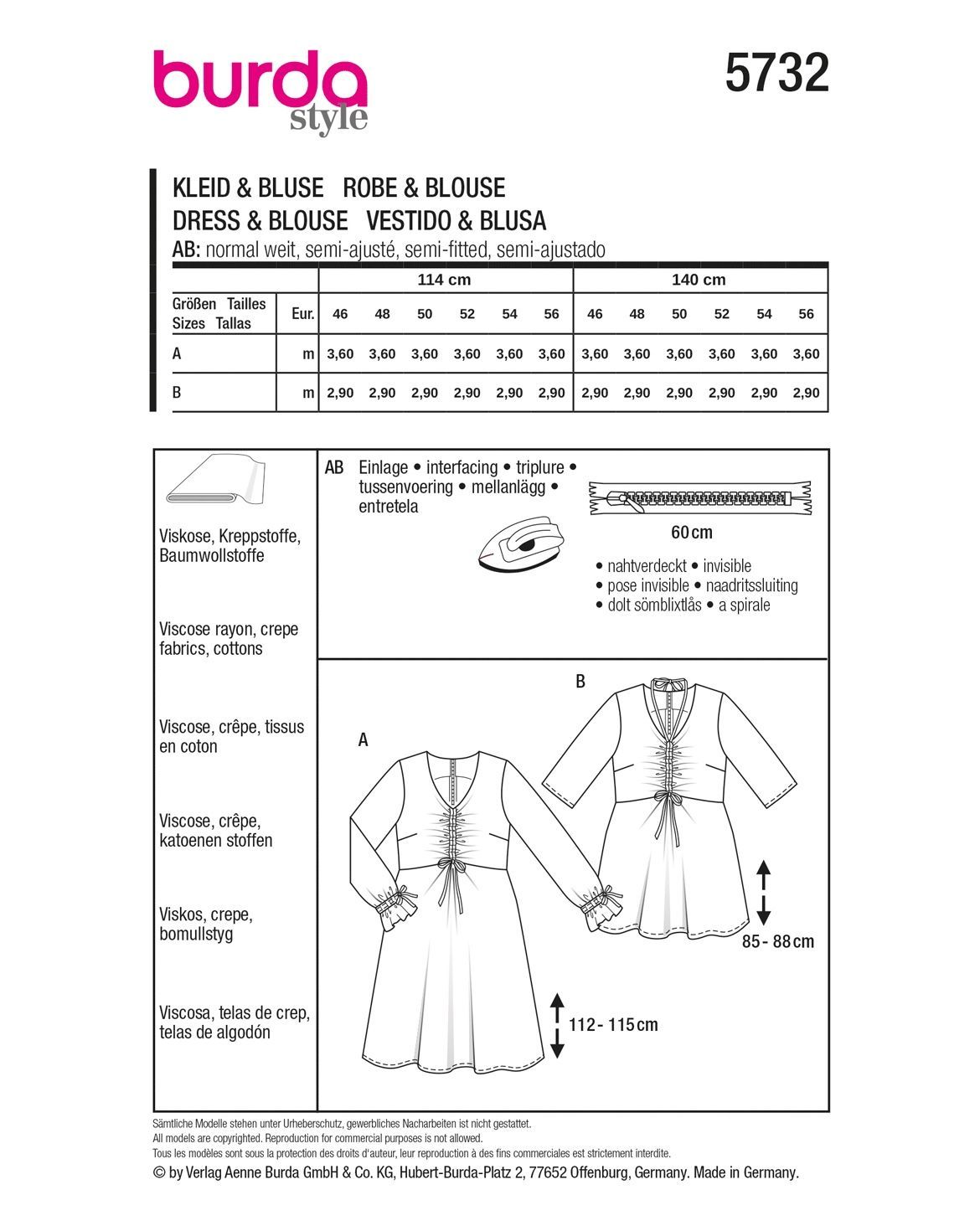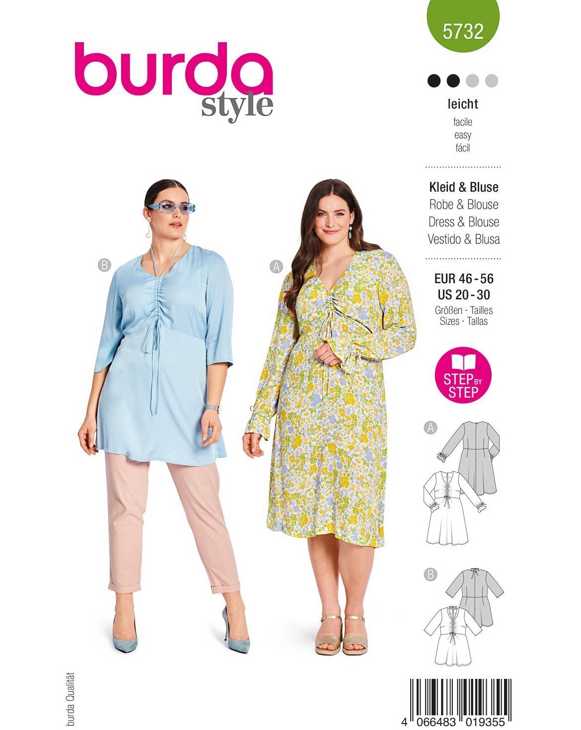 burda Papierschnittmuster Damen Schlupfbluse und Tunikakleid #5732 Gr. 46-56