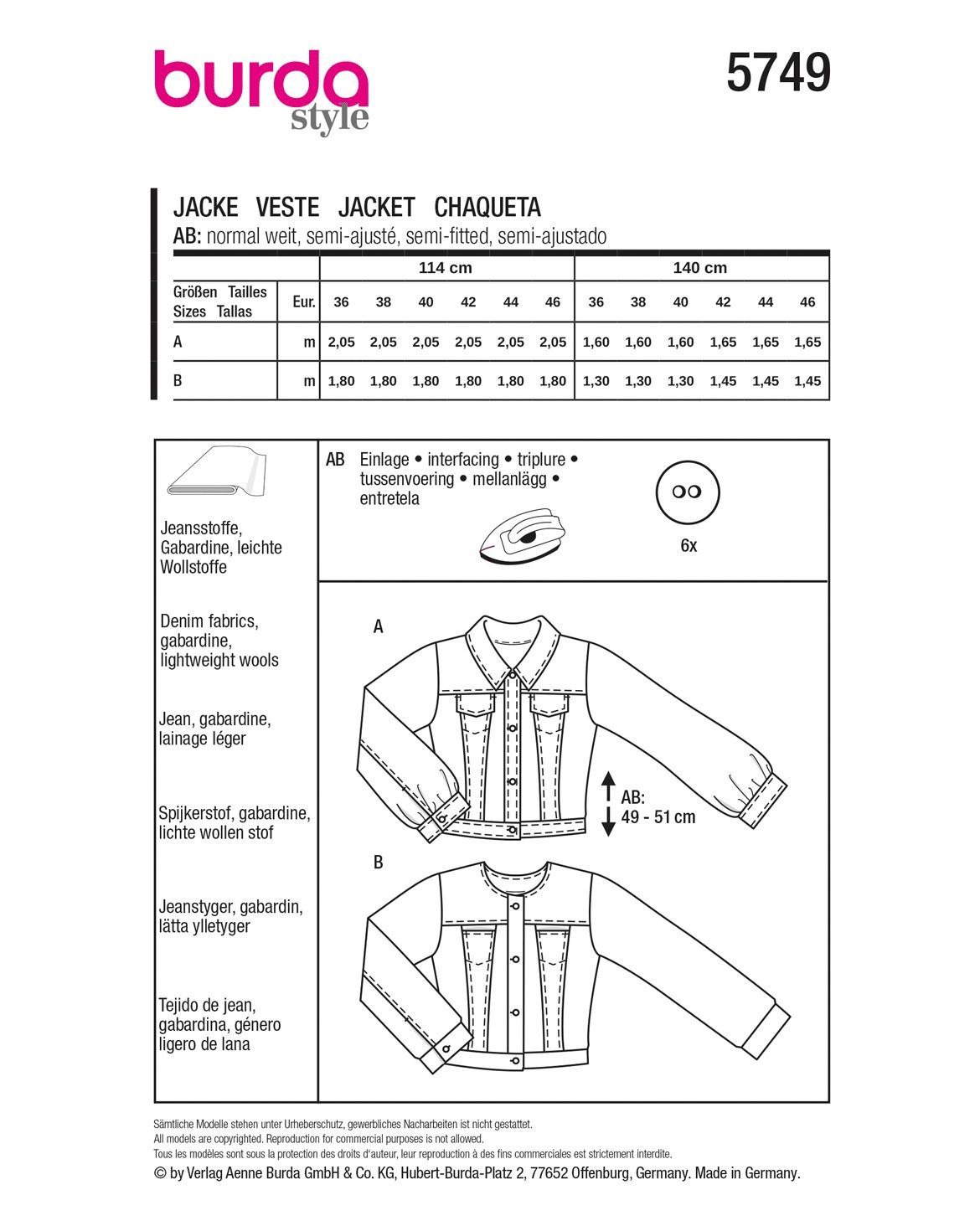 burda Papierschnittmuster Jeansjacke m. Umlegekragen, Taschen&Jacke m. Blenden #5749