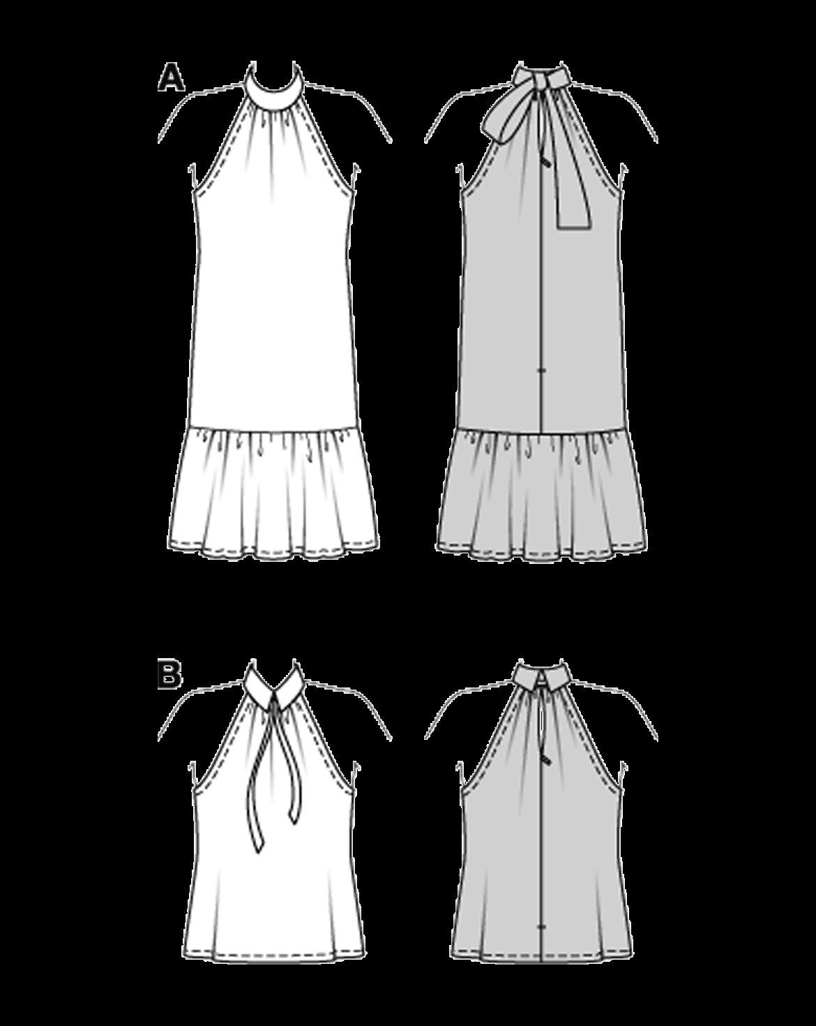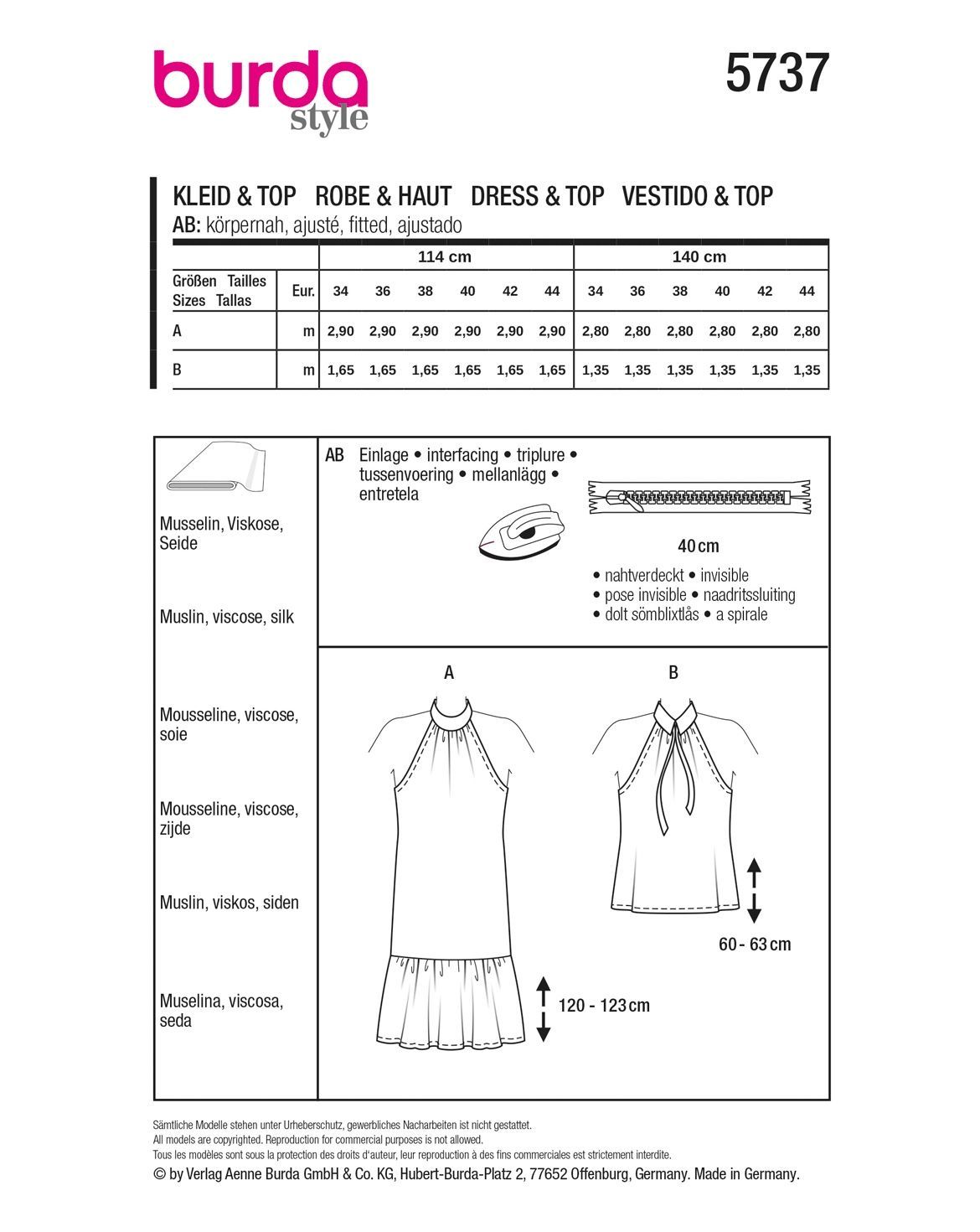 burda Papierschnittmuster Kleid m. Neckholder und XL-Rüsche & Top m. Hemdkragen #5737
