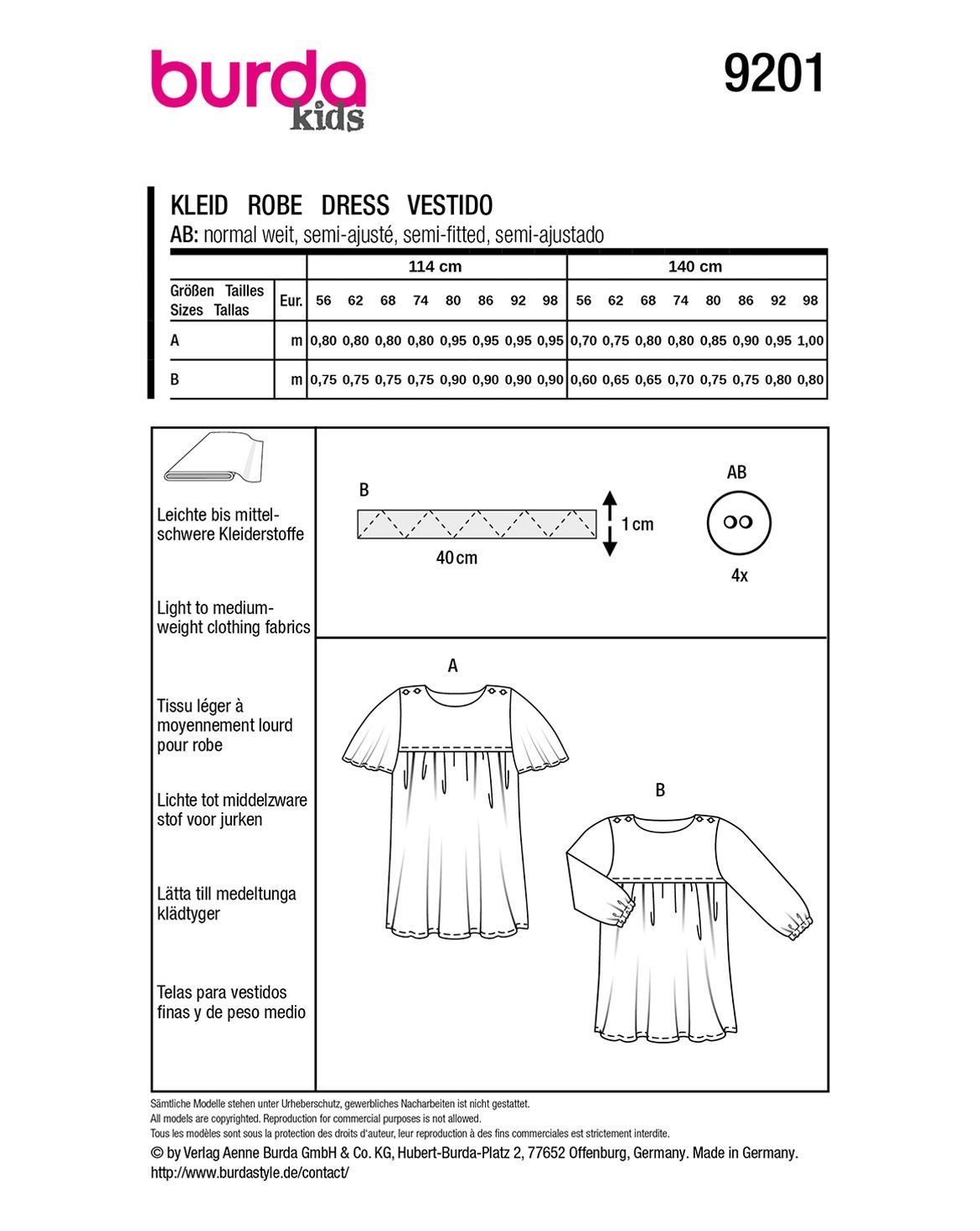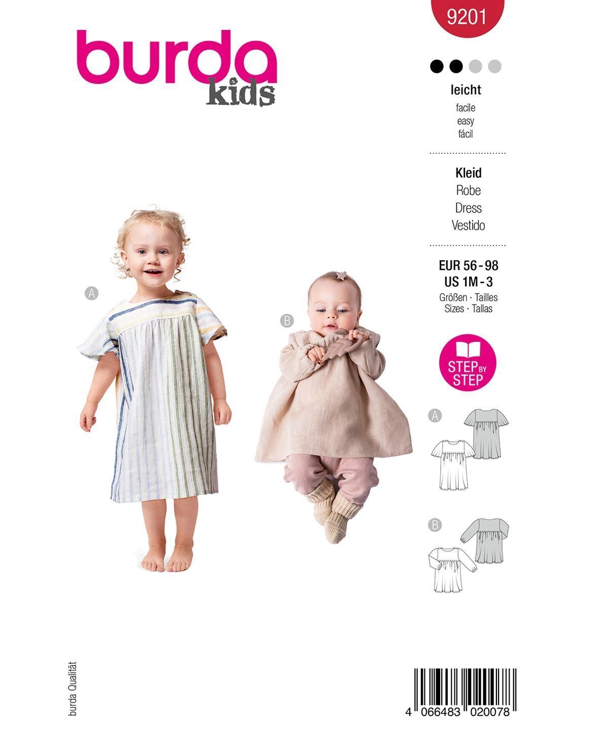 burda Schnittmuster Baby Kleider mit Gummizug #9201 Gr. 56-98