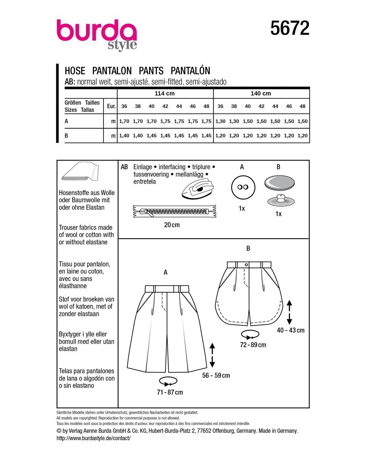 burda Schnittmuster Damen Bermuda-Shorts #5672 Gr. 36-48