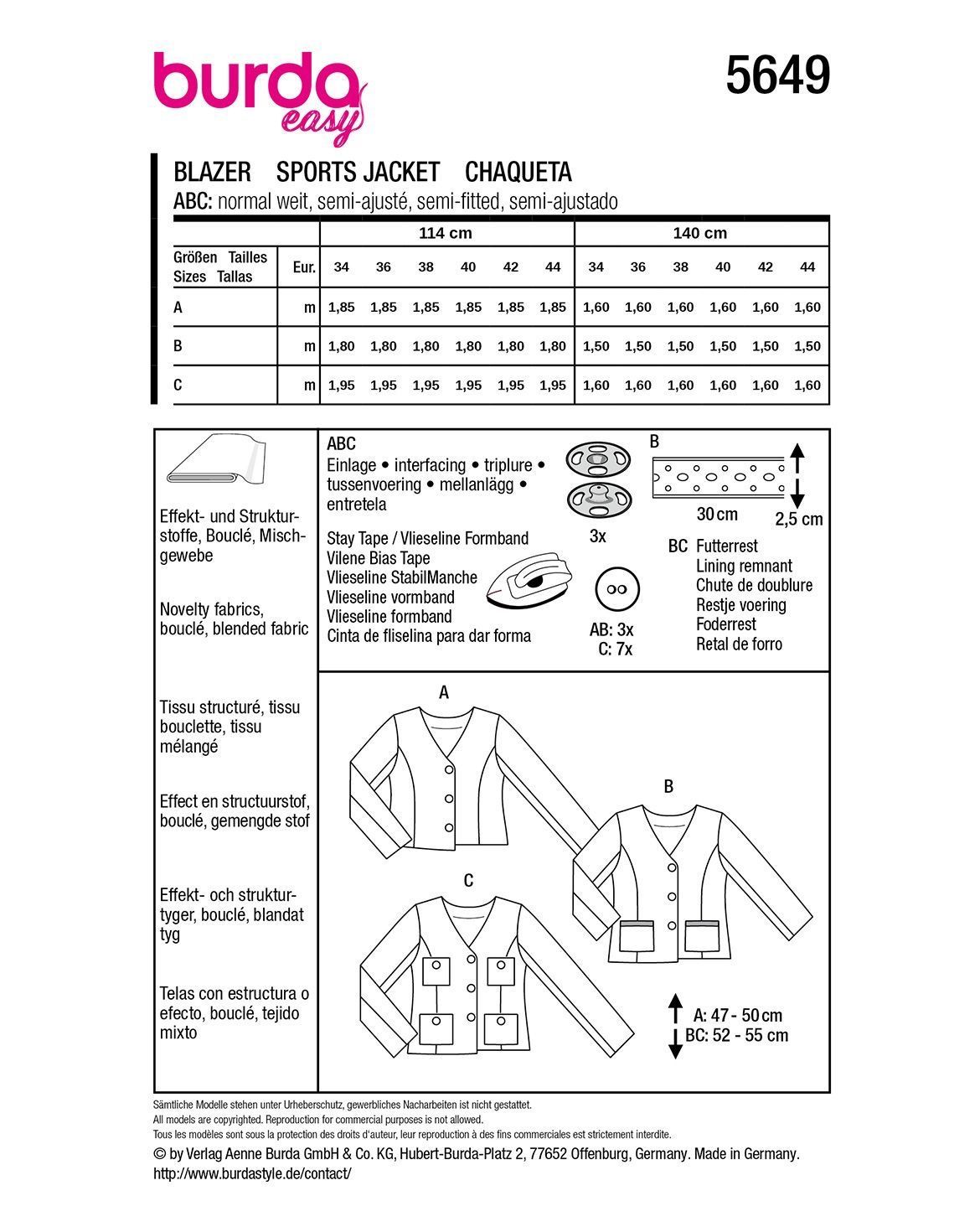 burda Schnittmuster Damen Blazer mit Knöpfen #5649 Gr. 34-44