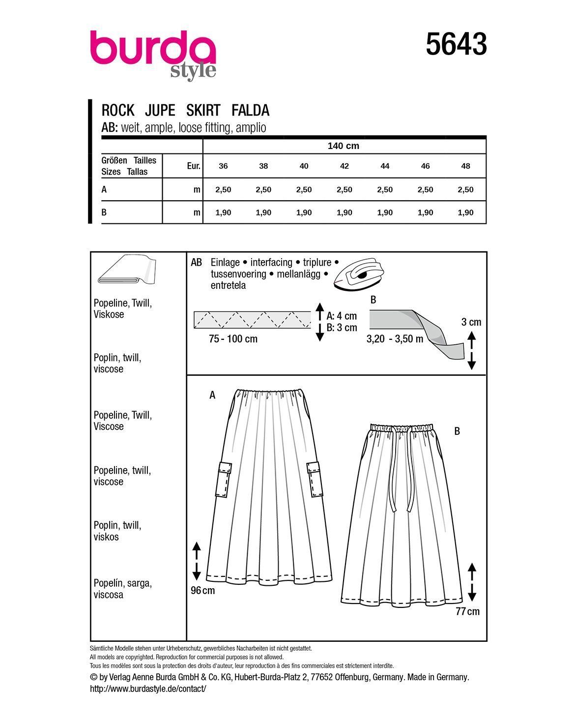 burda Schnittmuster Damen Faltenröcke #5643 Gr. 36-48