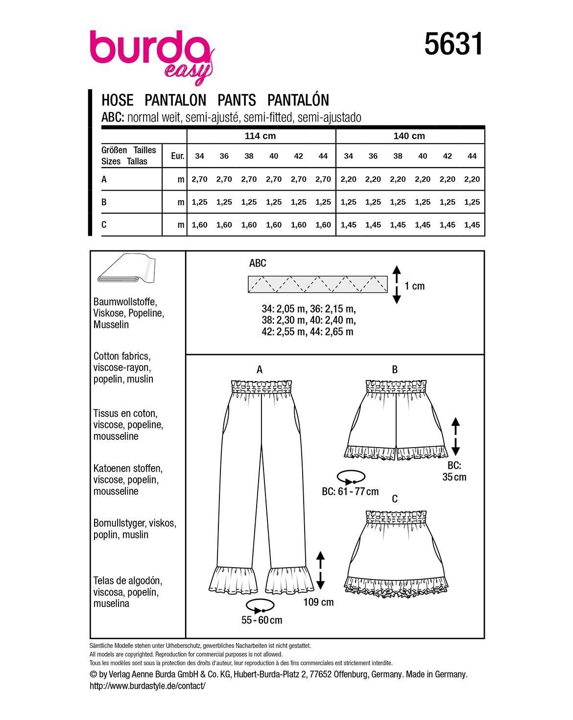 burda Schnittmuster Damen Hose & Shorts mit Rüschen
