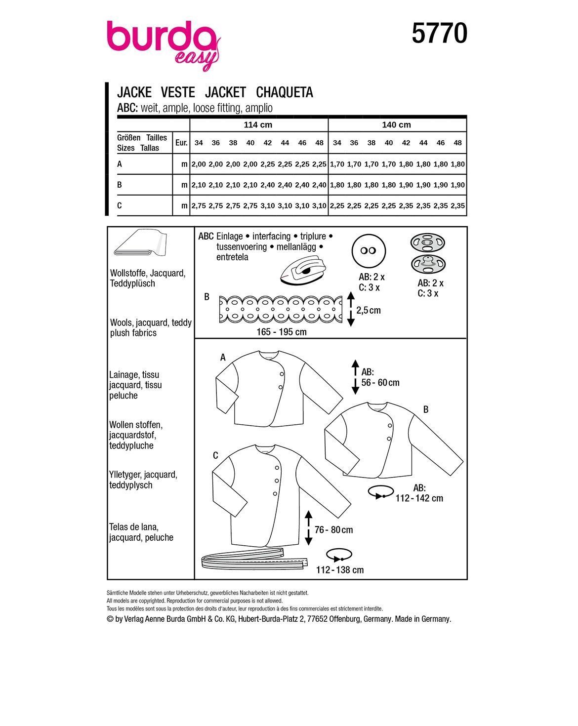 burda Schnittmuster Damen Jacke & Manteljacke mit Bindegürtel #5770