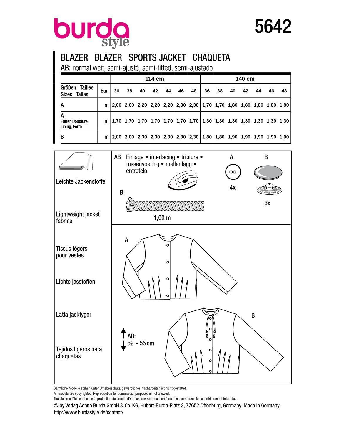 burda Schnittmuster Damen Jacken mit Saumfalten #5642 Gr. 36-48