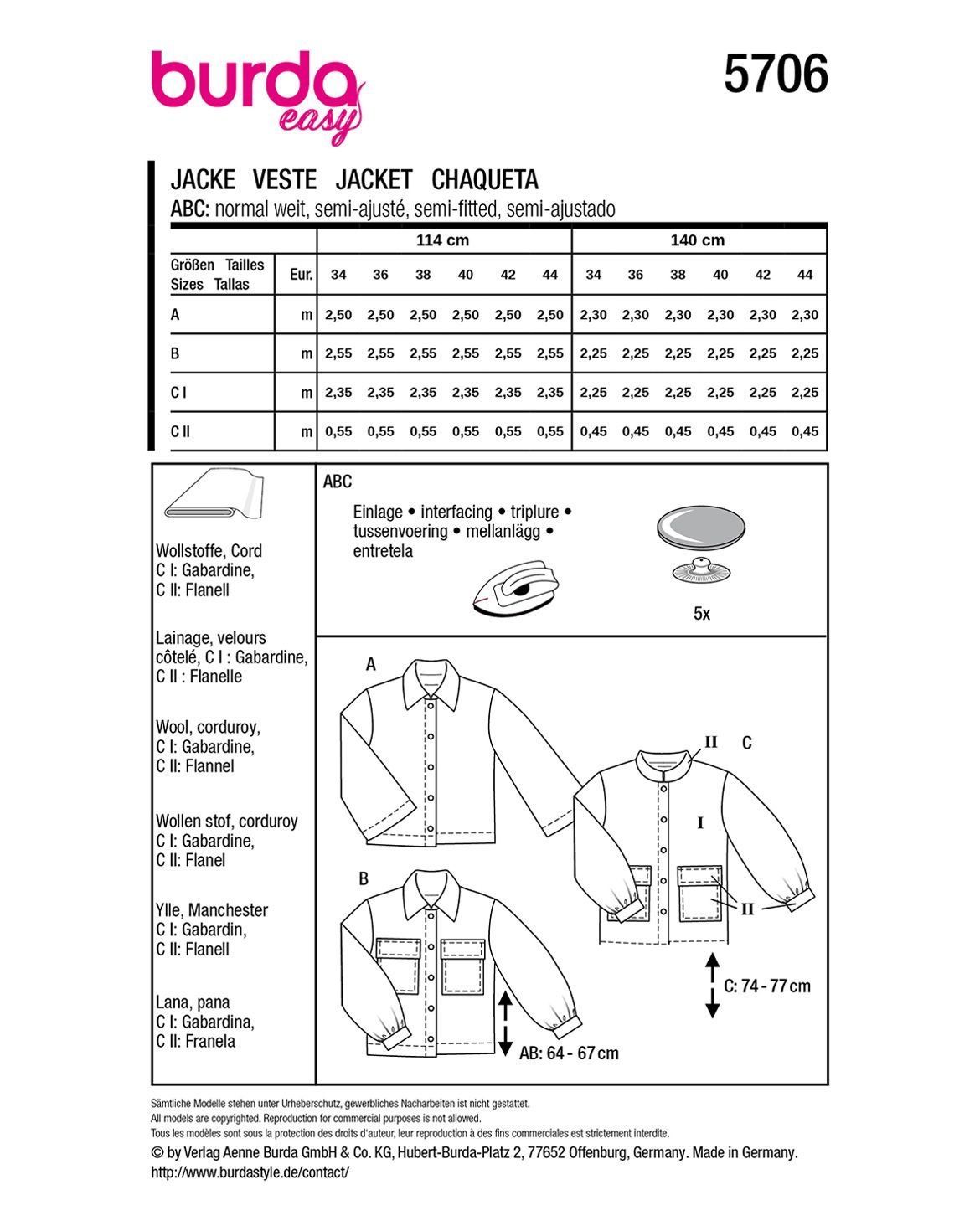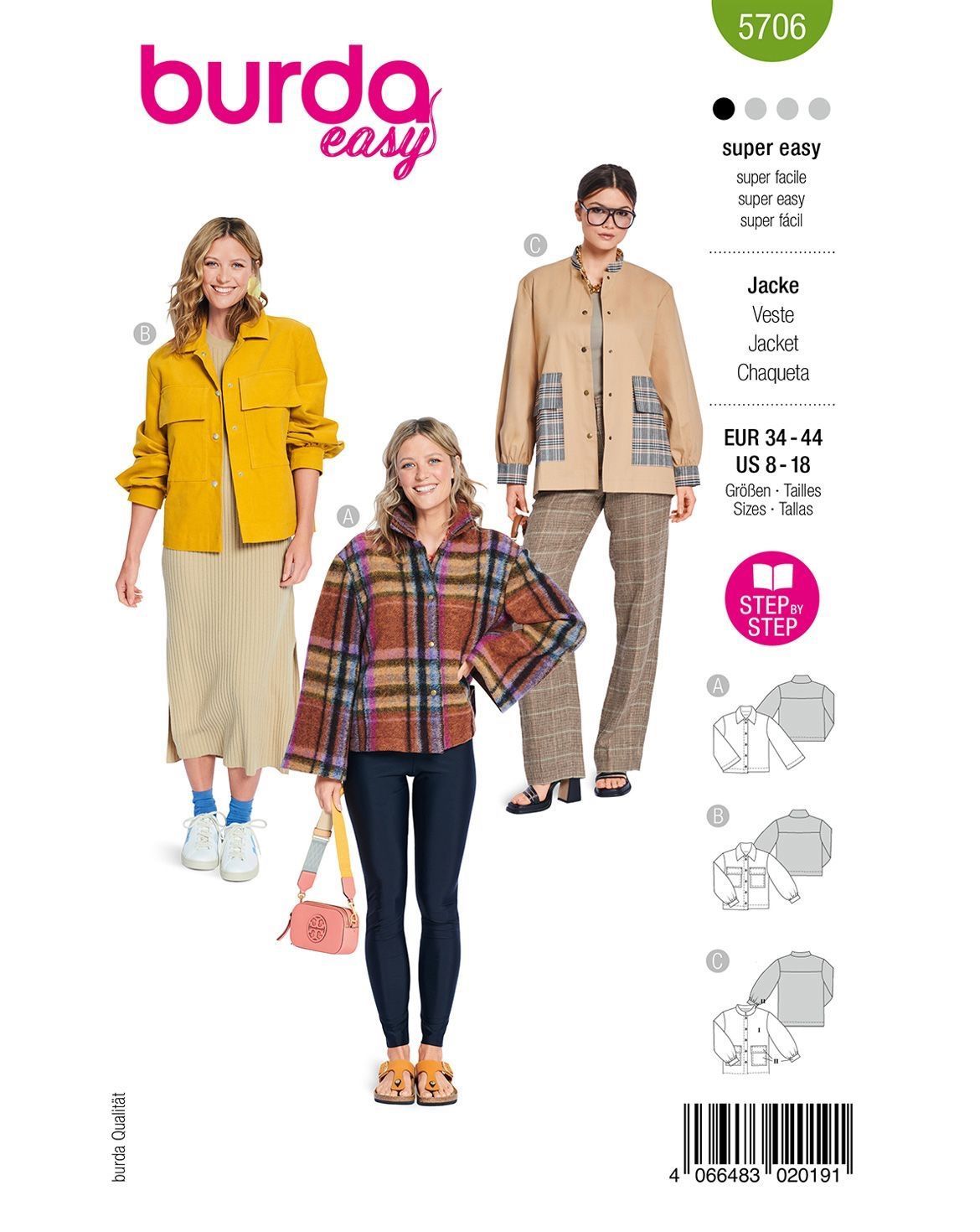 burda Schnittmuster Damen Jacken mit Stehkragen #5706 Gr. 34-44