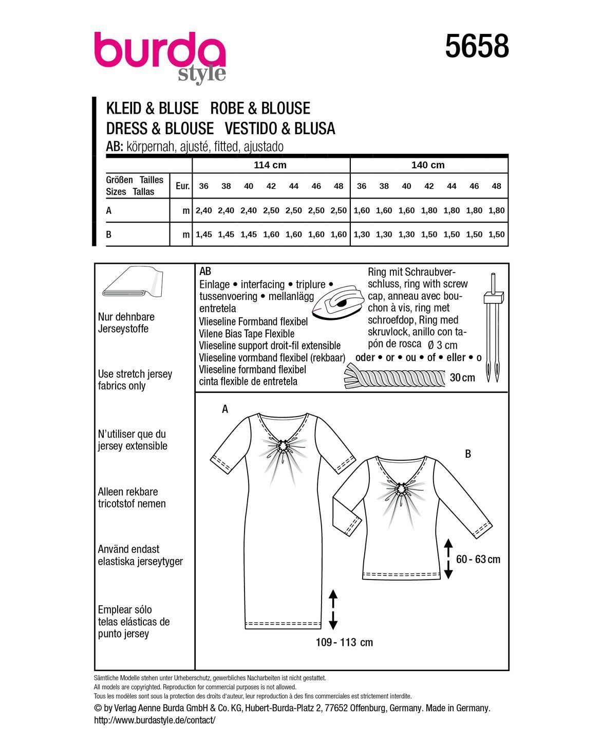 burda Schnittmuster Damen Jerseykleid & Bluse #5658 Gr. 36-48