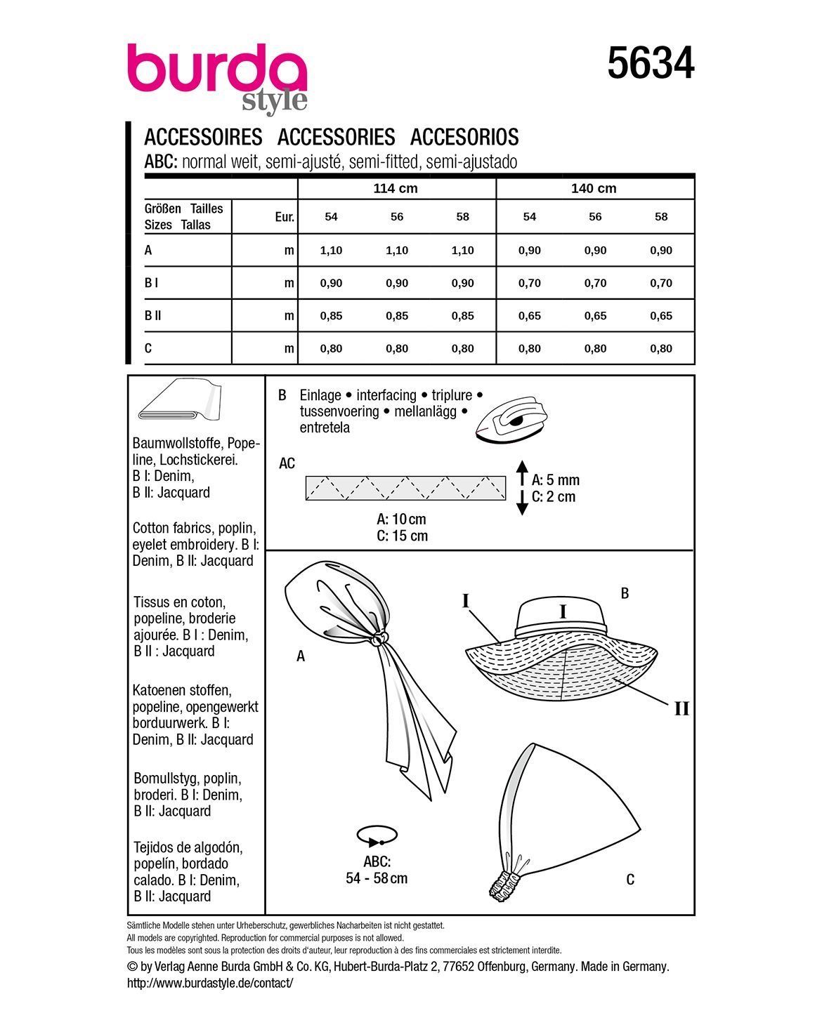 burda Schnittmuster Damen Kopfbedeckungen #5634 Gr. Einheitsgröße