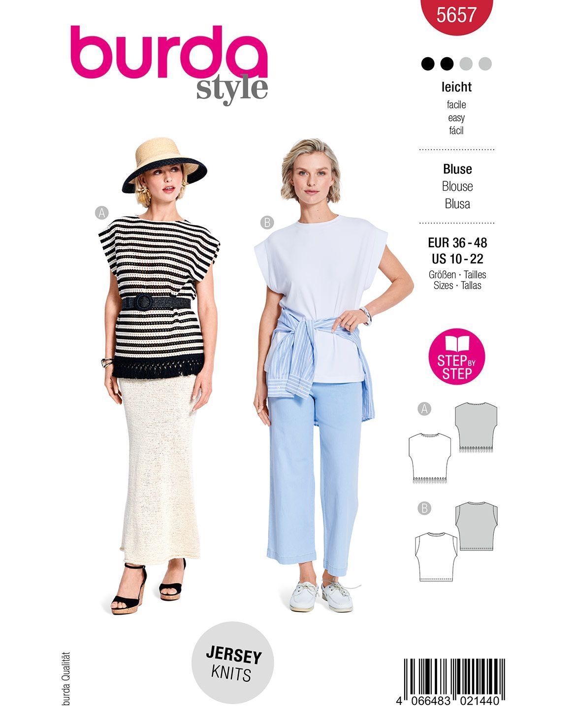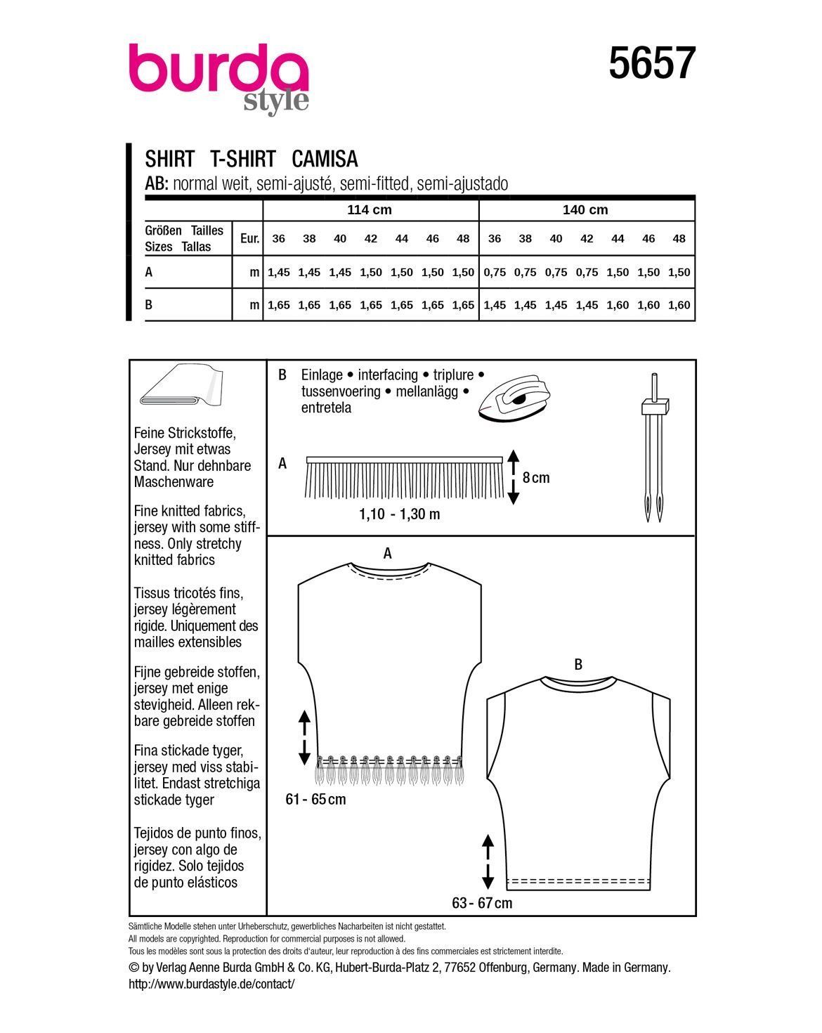 burda Schnittmuster Damen Kurzarm-Blusen #5657 Gr. 36-48