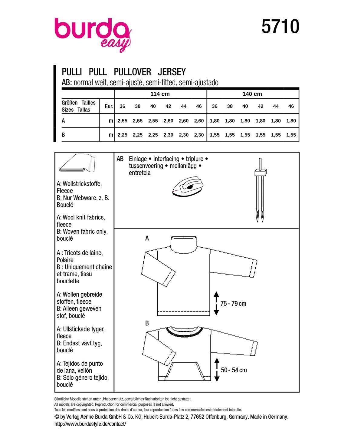 burda Schnittmuster Damen kuschelige Pullover #5710 Gr. 36-46