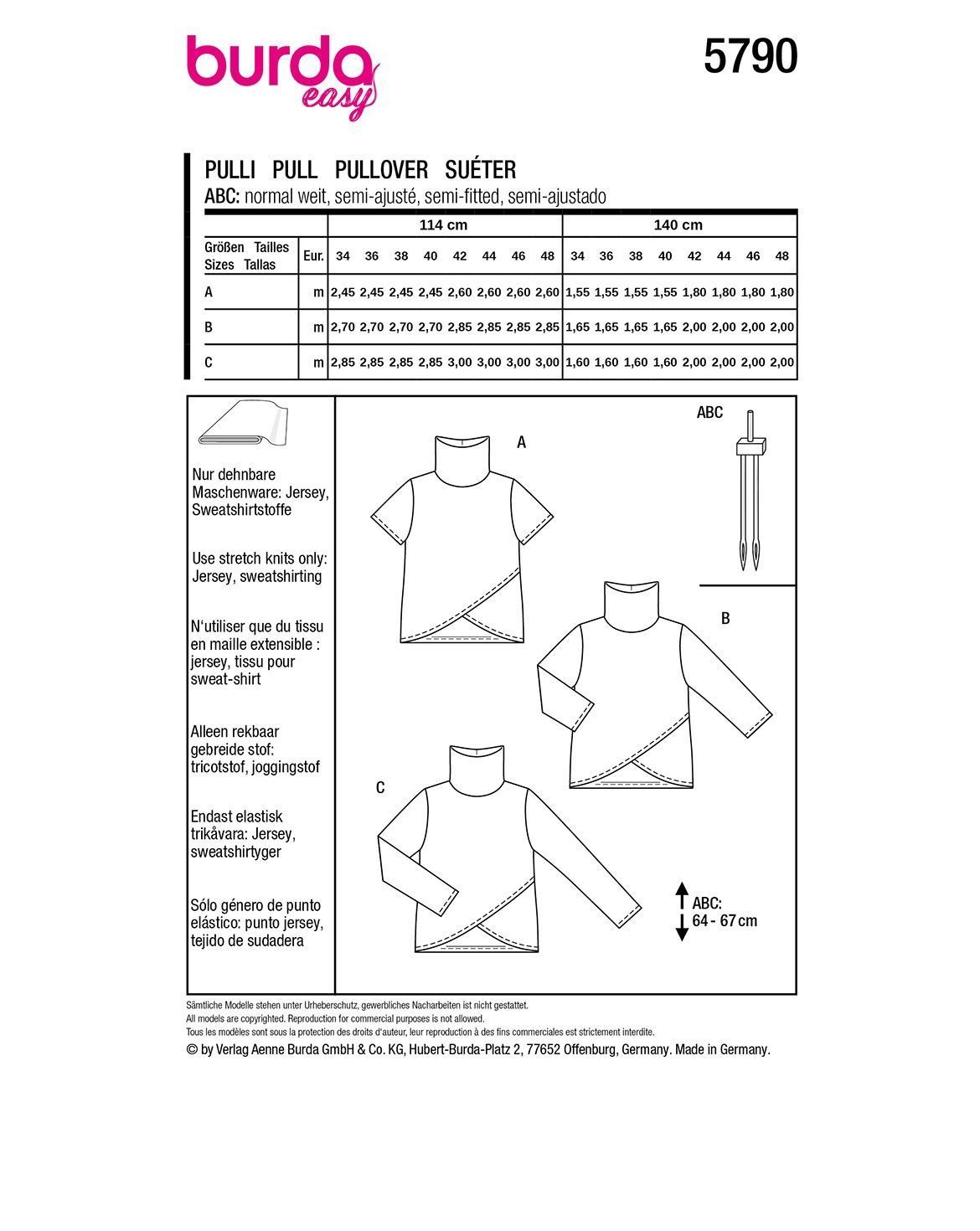 burda Schnittmuster Damen Langarmshirts mit Turtleneck & asymmetrischem Saum #5790 Gr