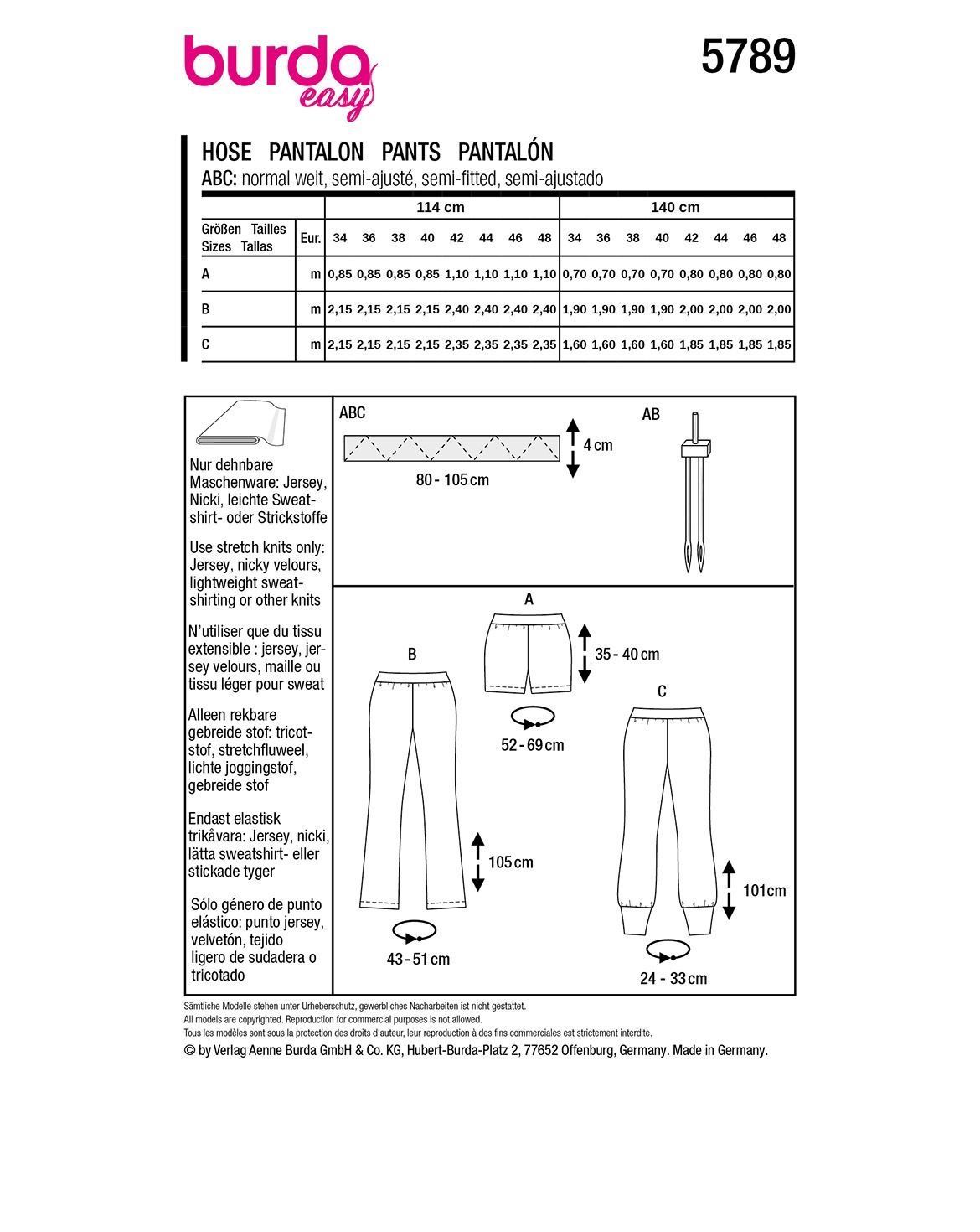 burda Schnittmuster Damen Nicki-Shorts, Pyjama-Pants & Jogger #5789 Gr. 34-48
