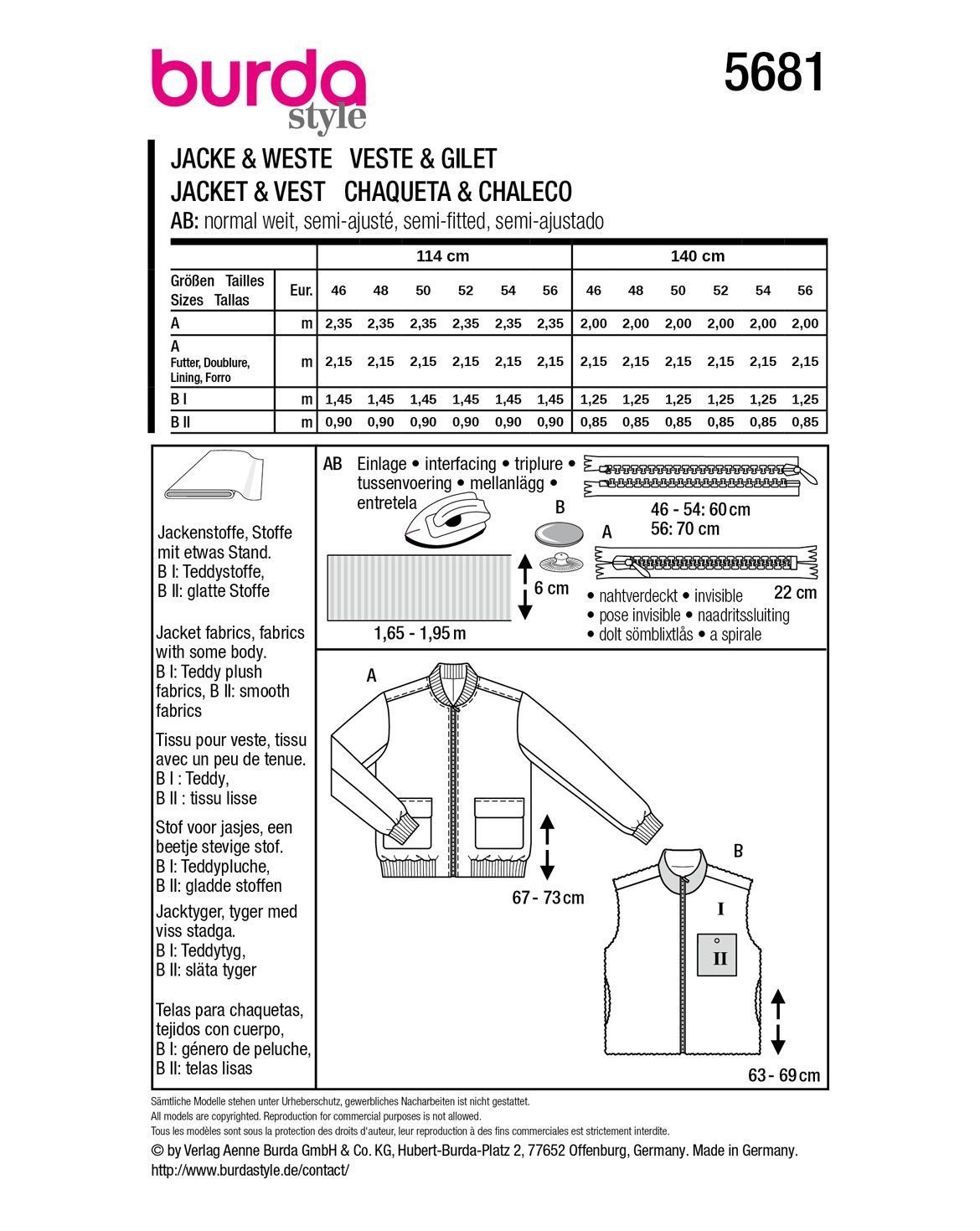 burda Schnittmuster Herren Blouson & Weste #5681 Gr. 46-56
