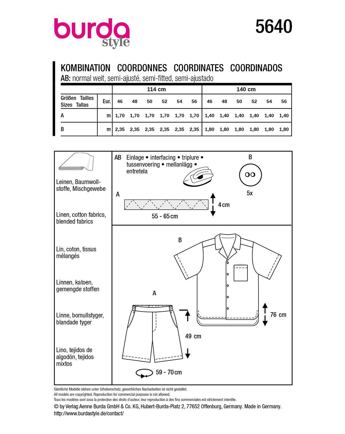 burda Schnittmuster Herren Set Hemd & Shorts #5640 Gr. 46-56
