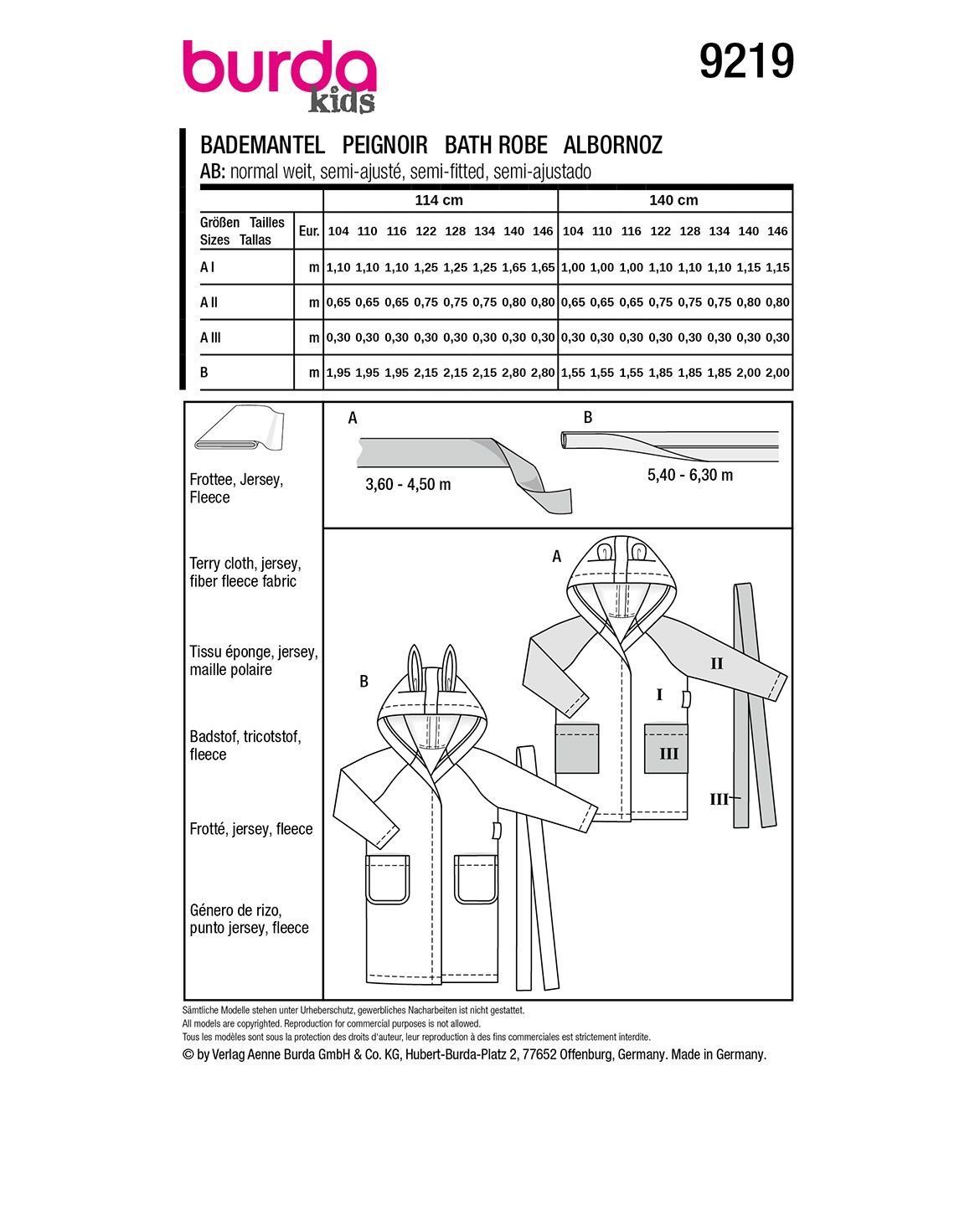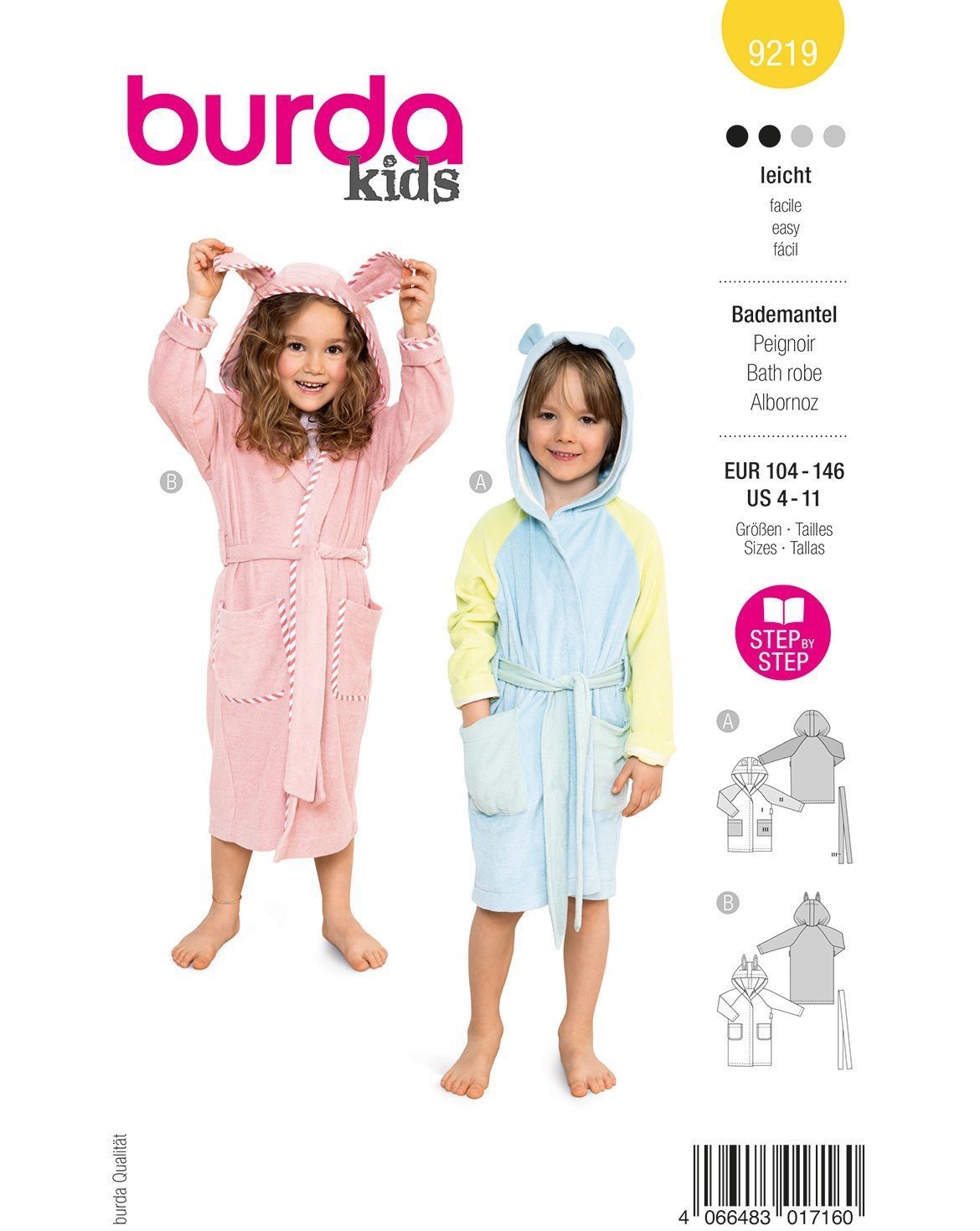 burda Schnittmuster Kinder Bademantel #9219 Gr. 104-146