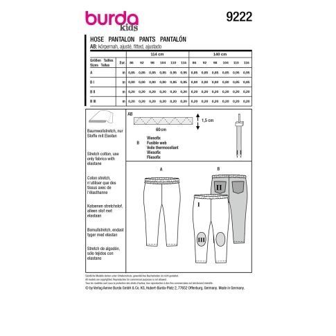 burda Schnittmuster Kinder elastische Hosen #9222 Gr.86-116