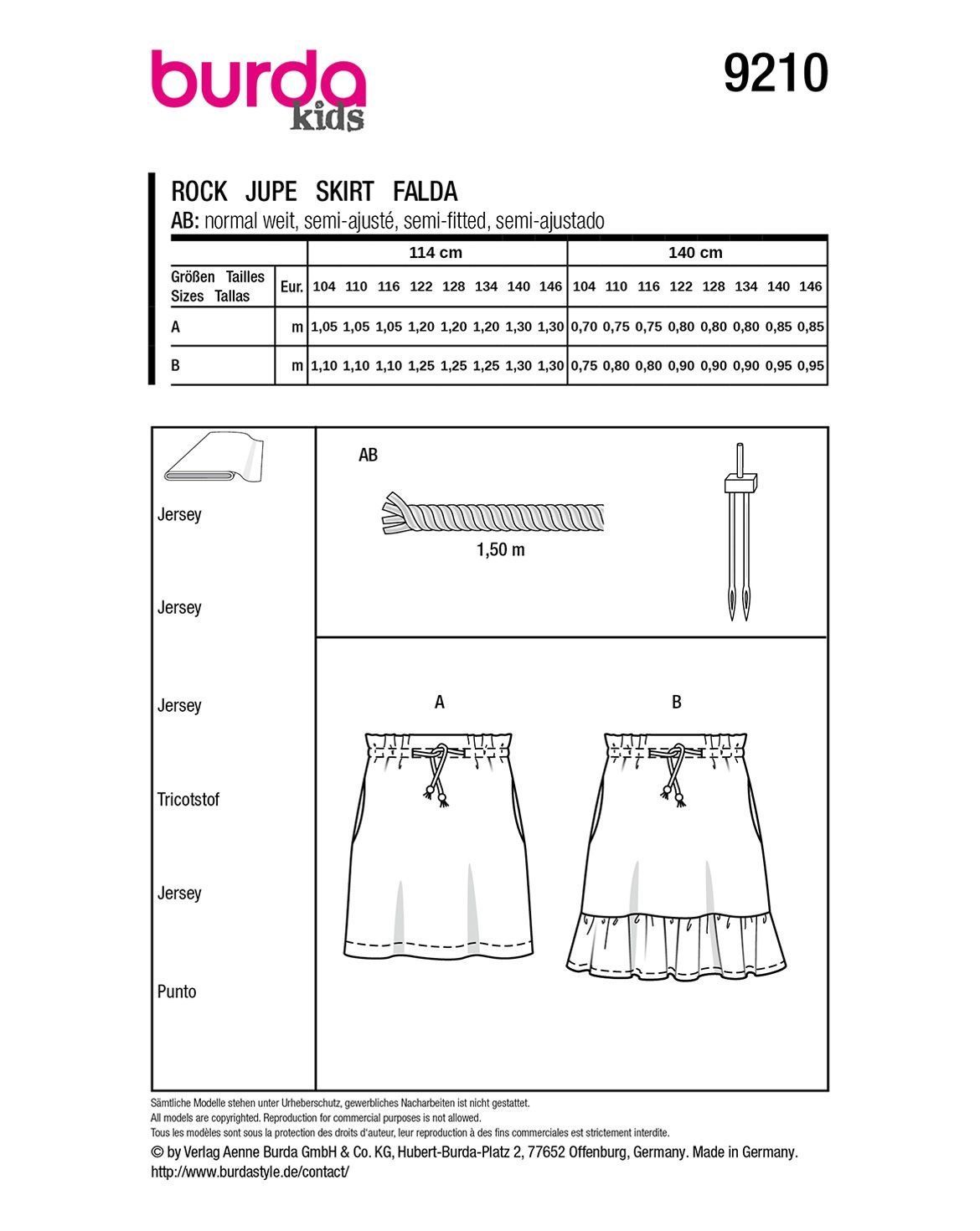 burda Schnittmuster Mädchen Miniröcke mit Schnürbund #9210 Gr. 104-146