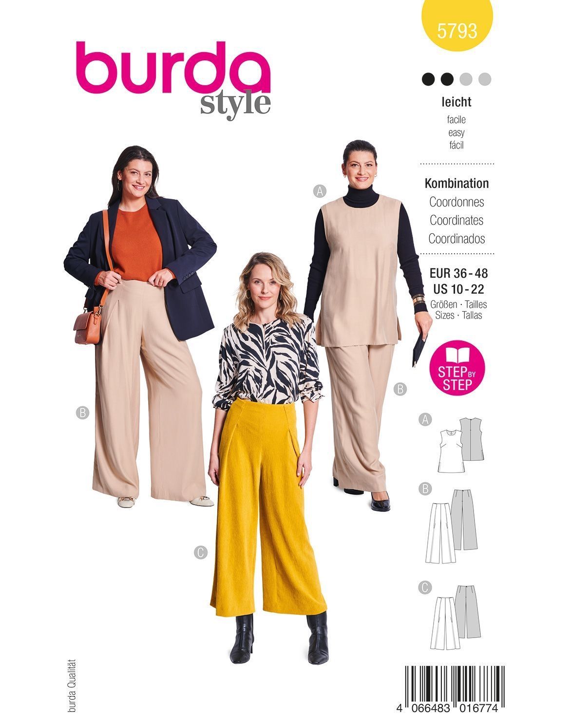 burda Schnittmuster-Set Damen Top & weite Culotte-Hose # 5793 Gr. 36-48