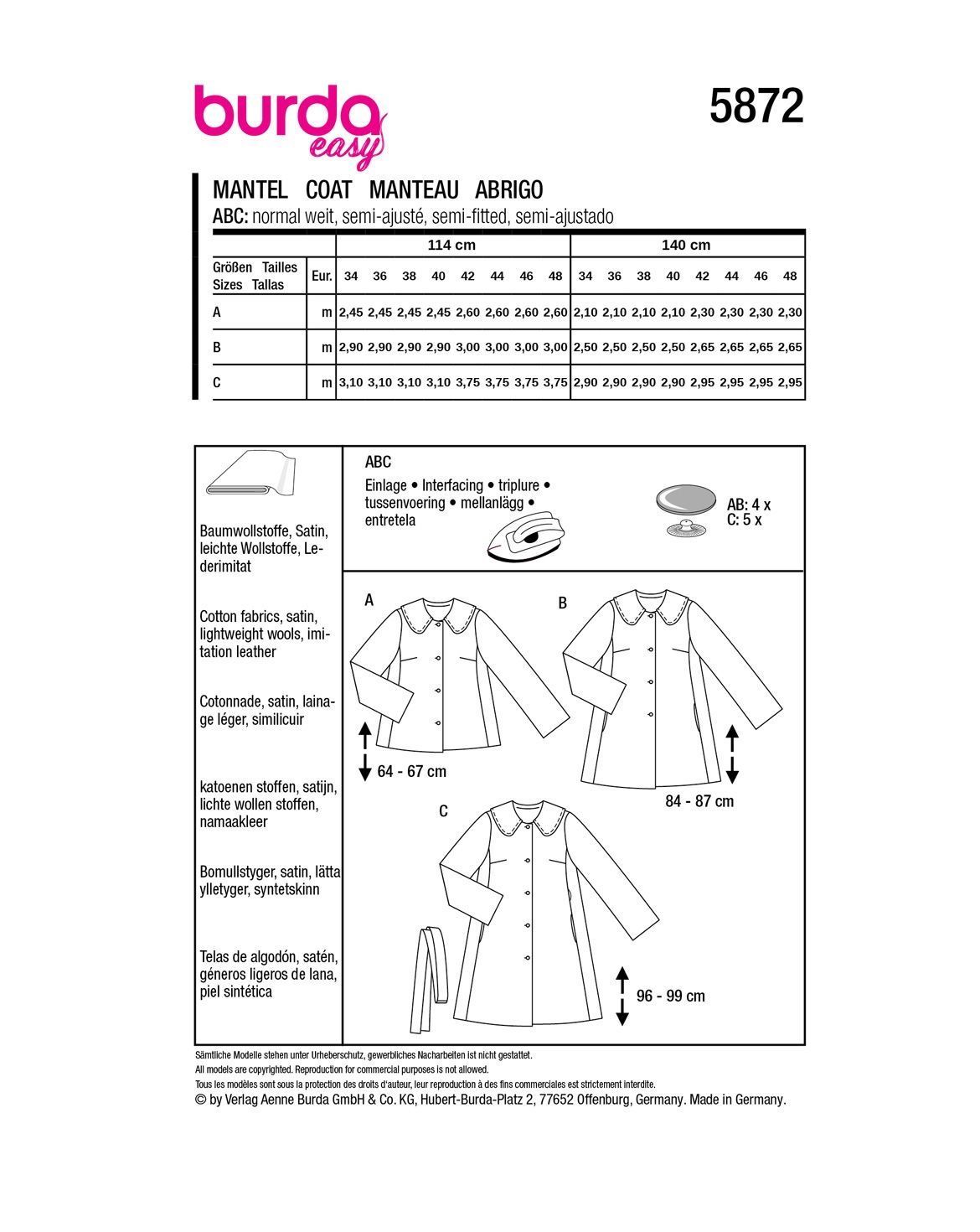 burda style Papierschnittmuster Formschöne Jacken #5872
