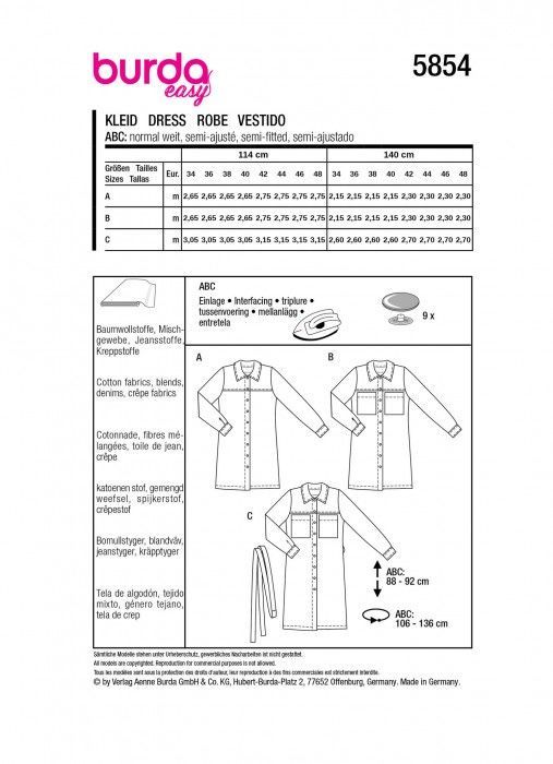 burda style Papierschnittmuster Geknöpfte Kleider #5854