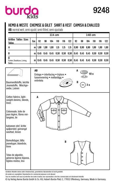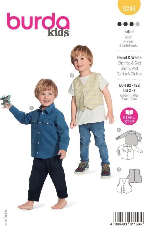 burda style Papierschnittmuster Hemd und Weste für Jungs #9248