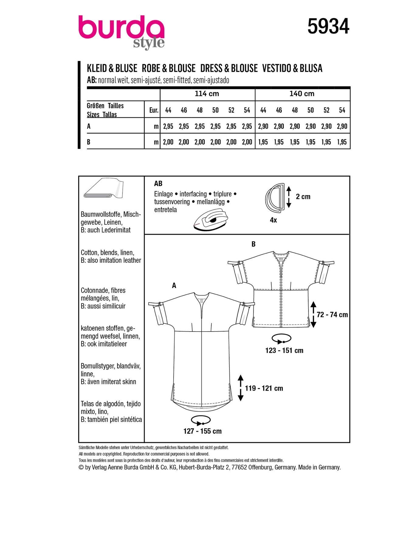 burda style Papierschnittmuster Kleid und Bluse #5934