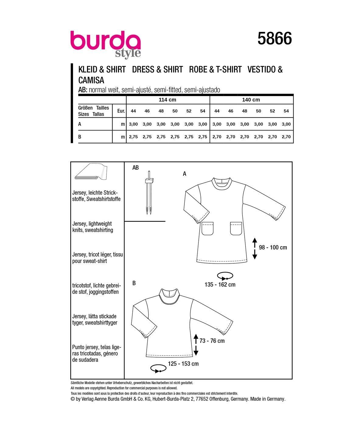 burda style Papierschnittmuster Kleid und Shirt #5866