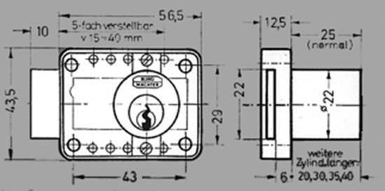 BURG-WÄCHTER Zyl. Kastenschloss Ms-Zyl. L25x22D, BWMZ23MS