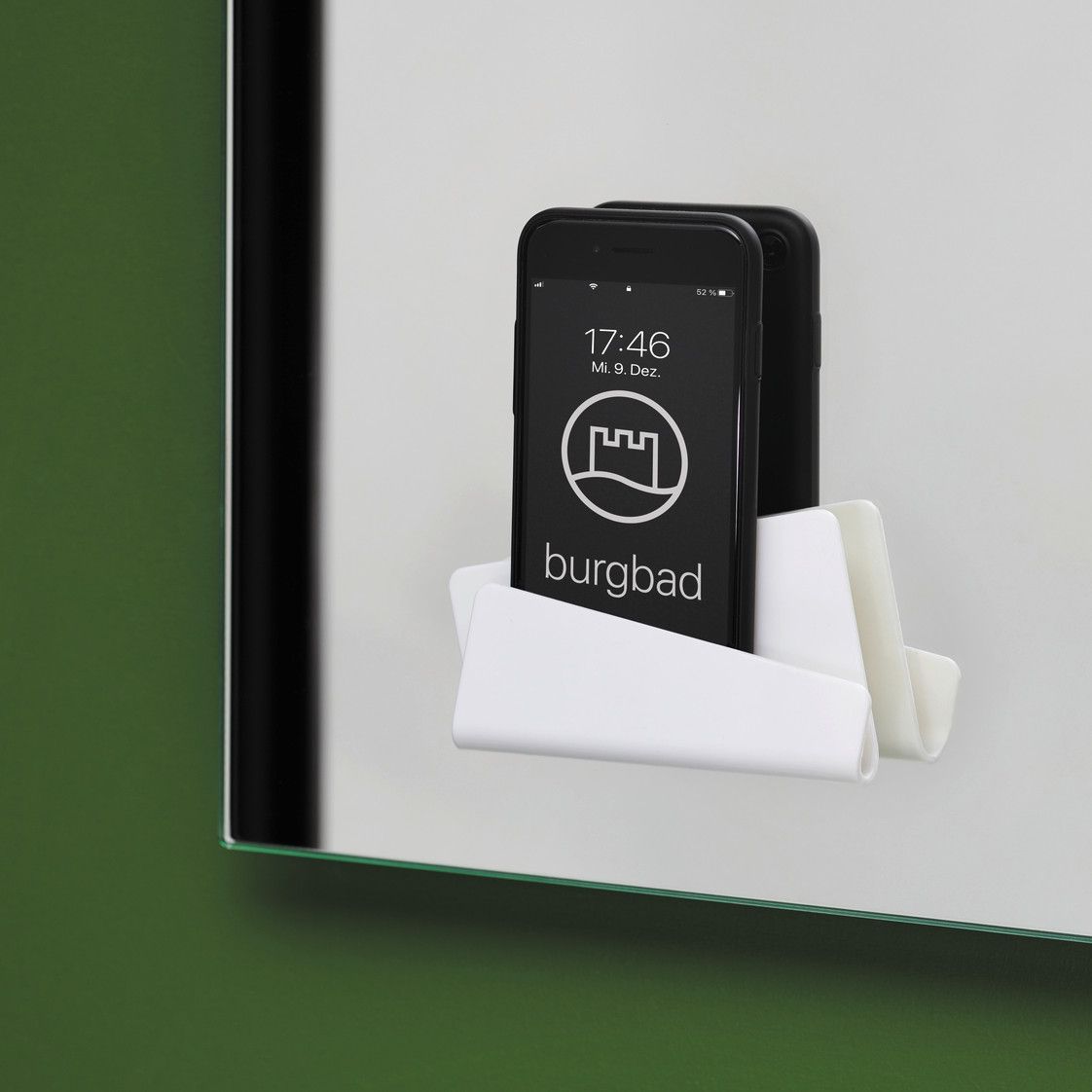 Design-Spiegel m. Handyhalter - Lieferzeit 4-6 Wochen im Shop finden Sie die auch den Burgbad-Montageservice, sowie den passenden Hochschrank, sowie Badmöbel Burgbad Spiegel mit Beleuchtung Maße (BxHxT): 1000x700x30mm oder Maße (BxHxT): 1200x700x30mm LED-Beleuchtung, 5700 K, EEK E 1 Sensorschalter: