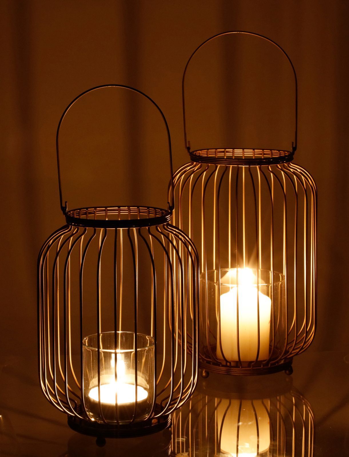 BURI Metall-Laterne mit Glaseinsatz Hängelampe Kerzenhalter Glaslaterne