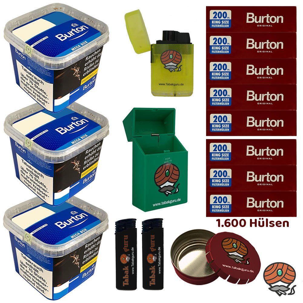 Burton Blue/Blau Volumentabak MEGA BOX 3x 270g, Burton Hülsen, viel Zubehör