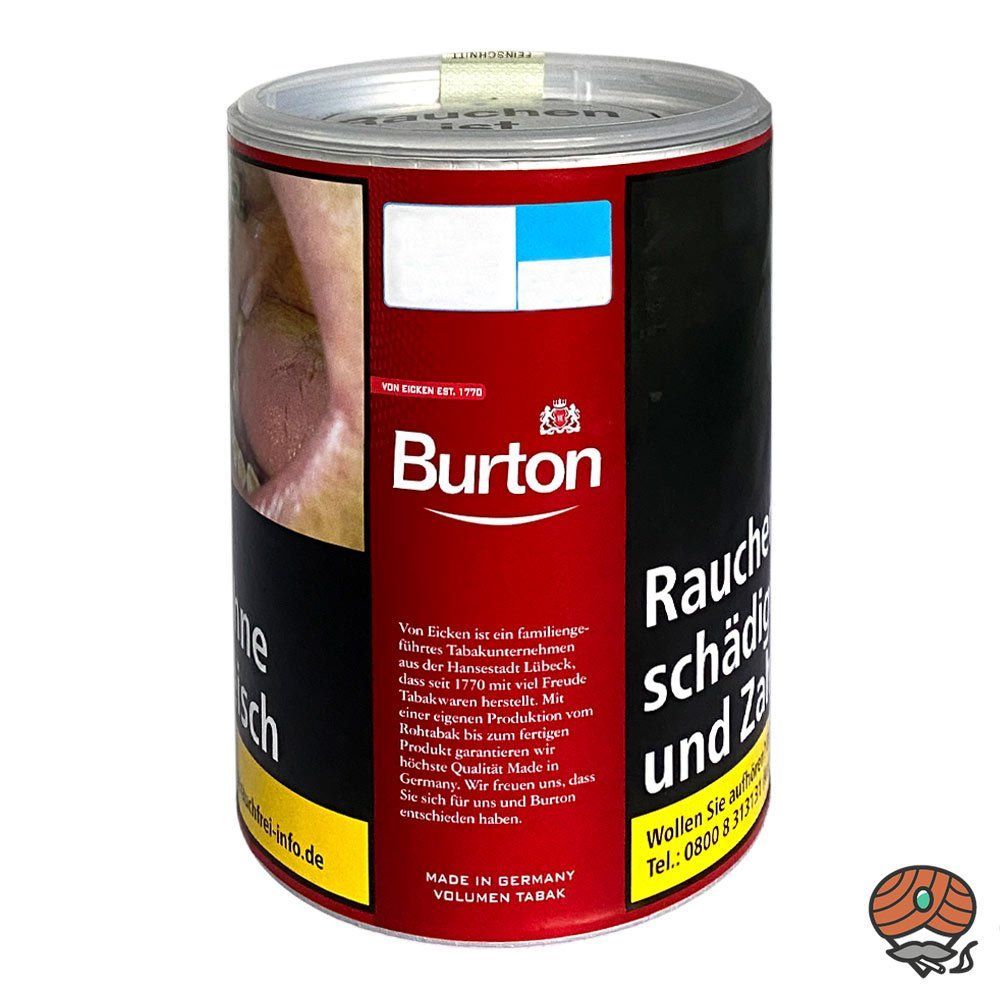 4 x Burton Red Rot Volumentabak Zigarettentabak Dose + 500 OCB Eco Tubes King Size Filterhülsen + 1 Zigarettenbox (nicht wählbar) Tabak: Der Burton Red American Blend Volumentabak hat einen außergewöhnlich intensiven, kräftig-würzigen Geschmack. Es werden nur ausgewählte Burley-, Virginia- und Orien