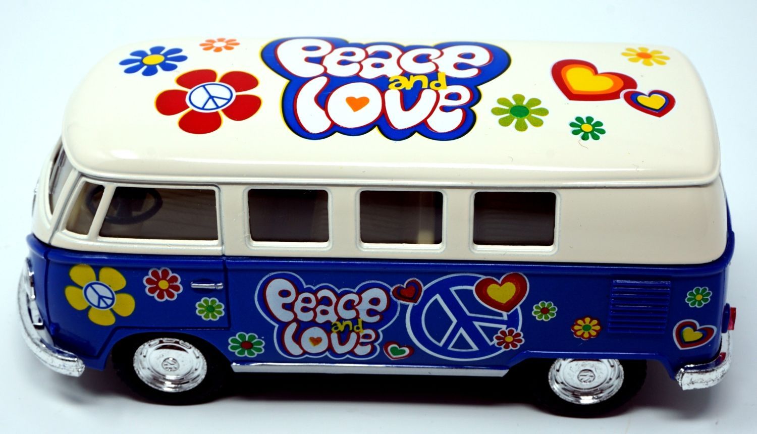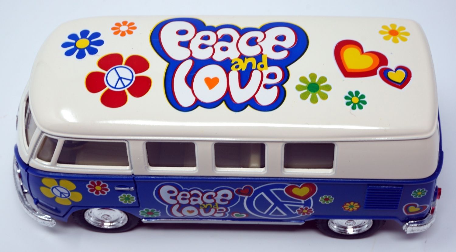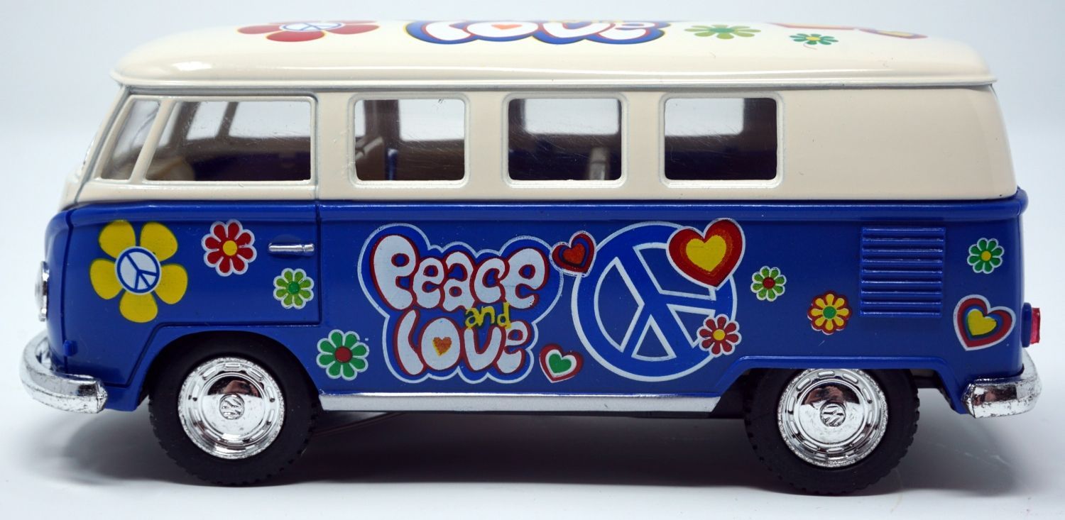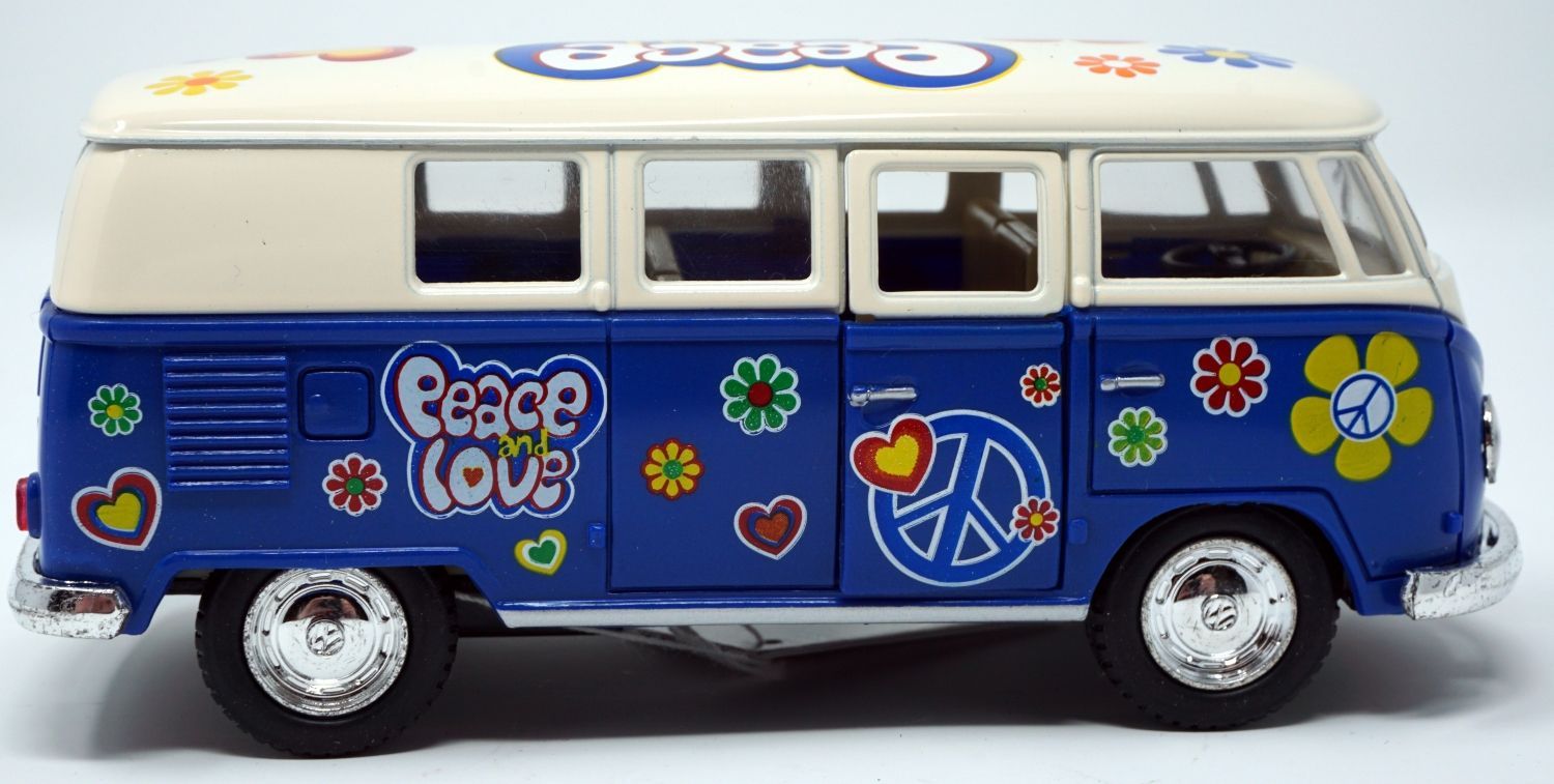 Bus T1 Peace and Love blau / beige Modellauto Rückziehmotor
