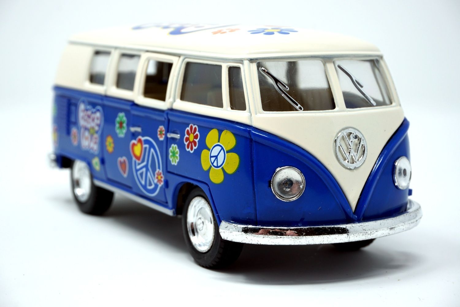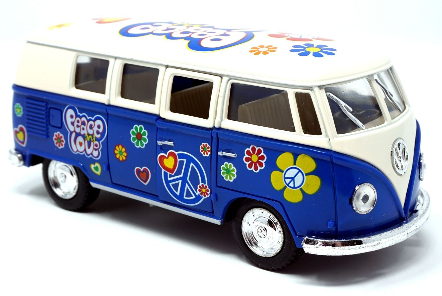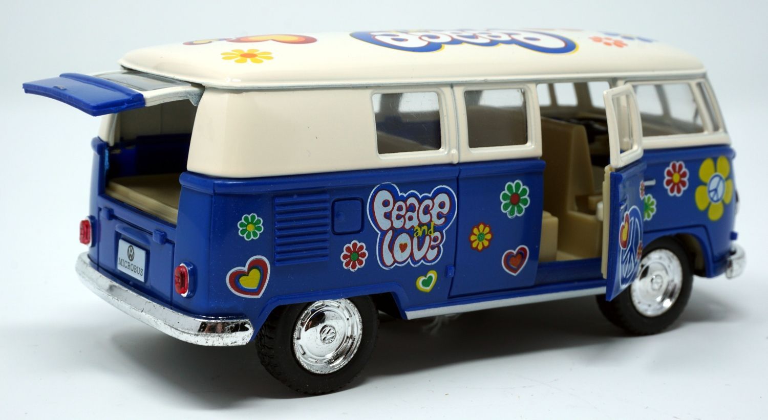 Bus T1 Peace and Love blau / beige Modellauto Rückziehmotor