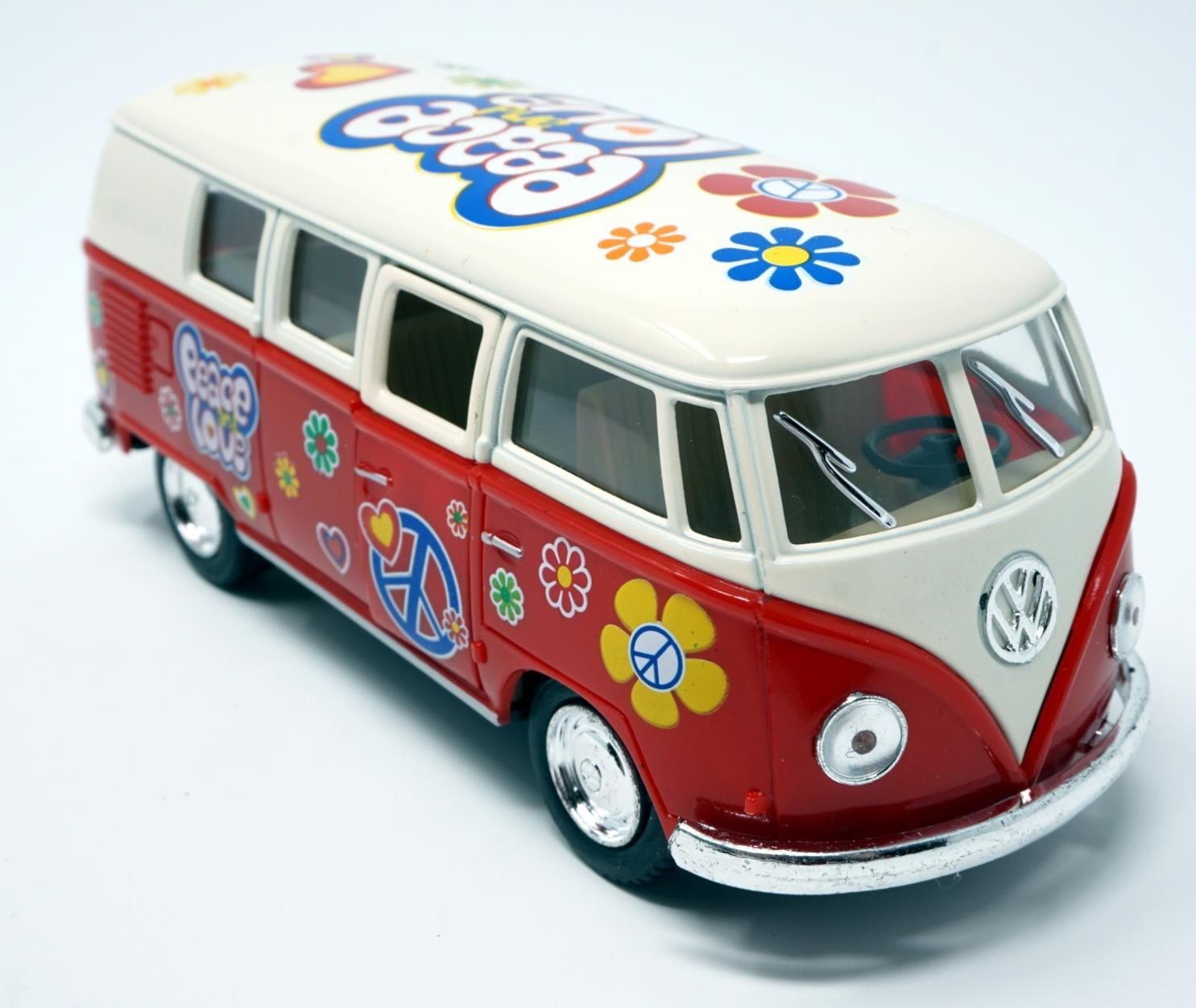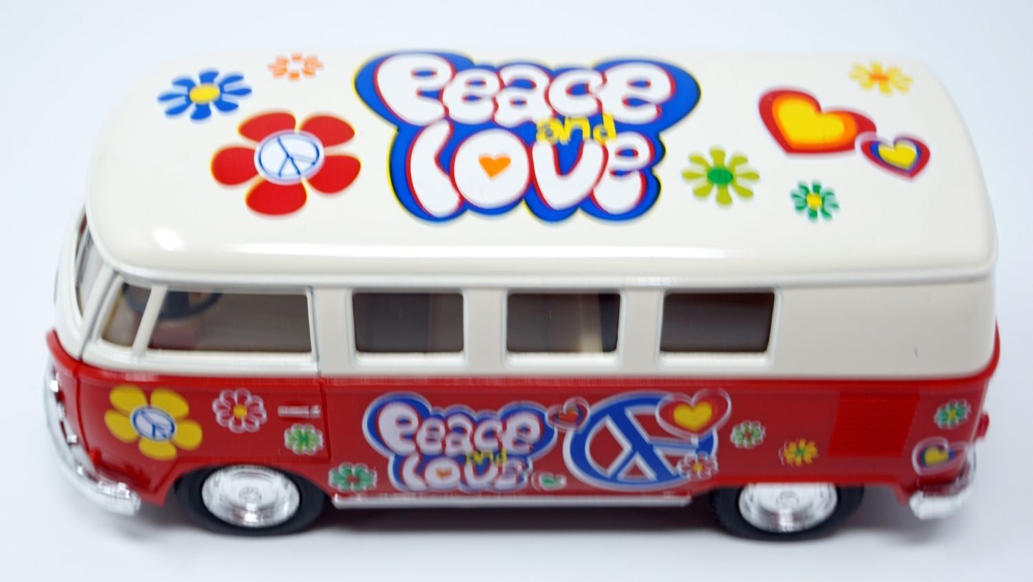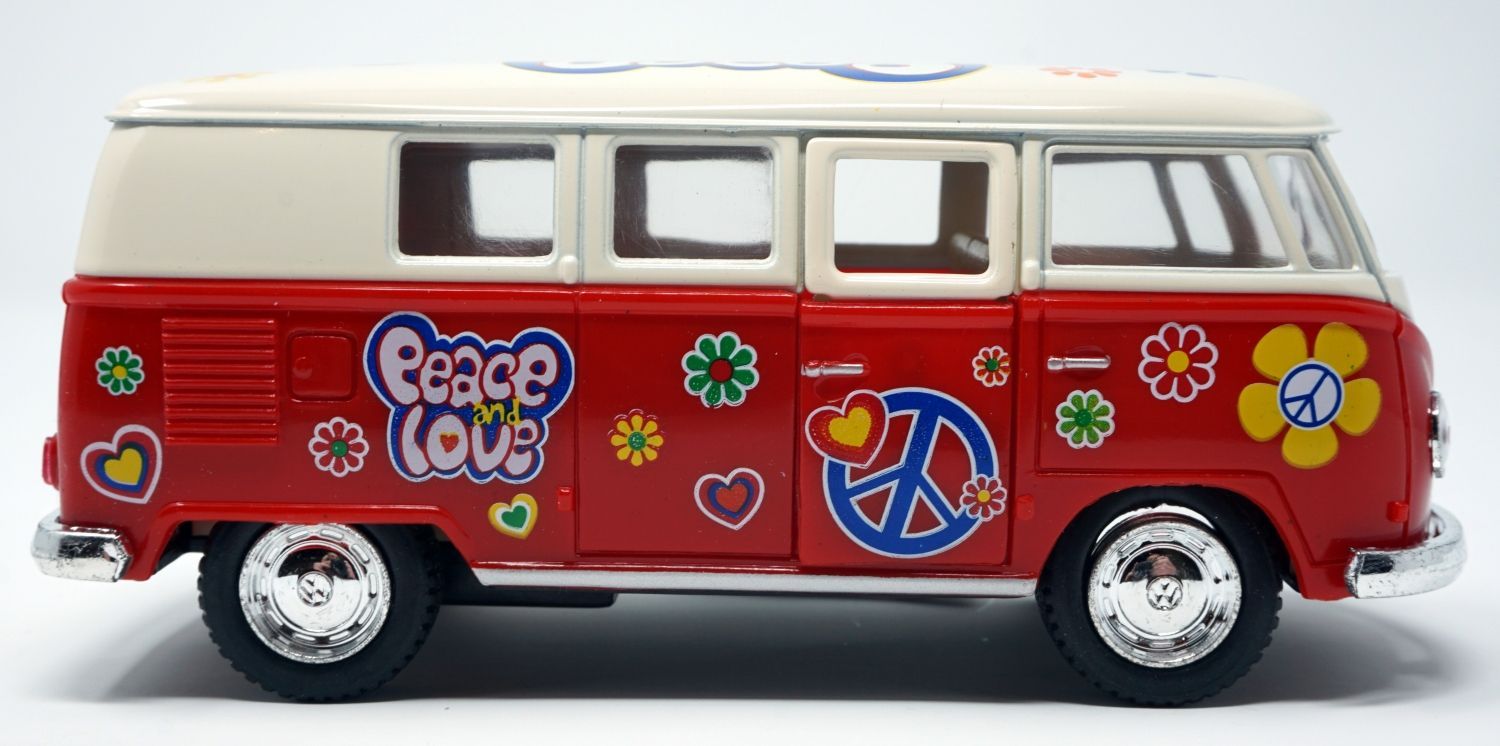Bus T1 Peace and Love rot / beige Modellauto Rückziehmotor