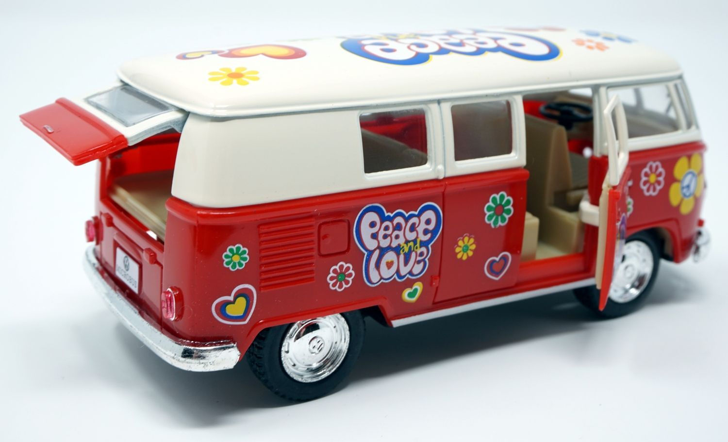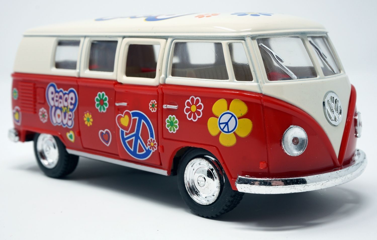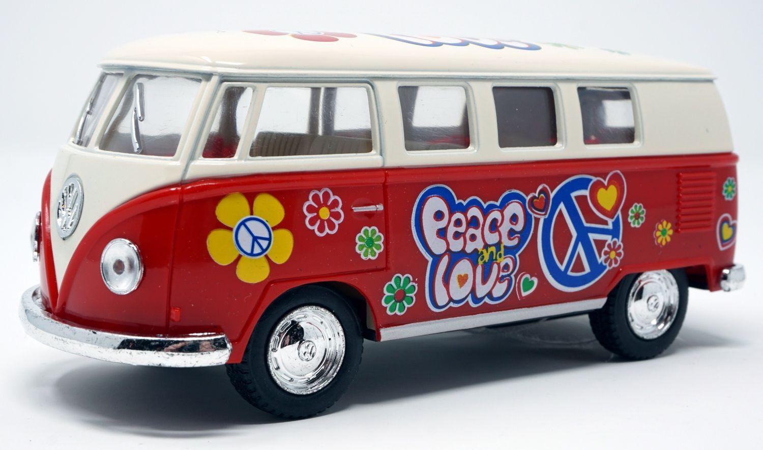 Bus T1 Peace and Love rot / beige Modellauto Rückziehmotor