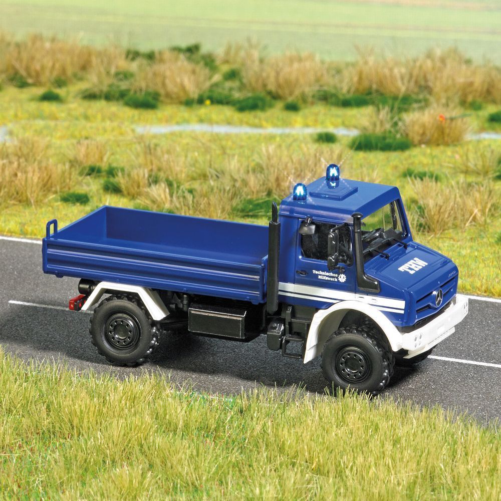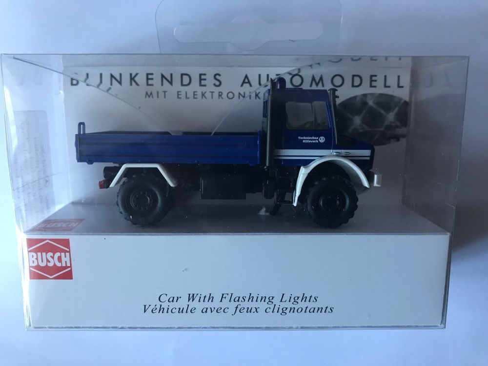 Busch Busch 5590 Mercedes Unimog THW mit blinkenden Lichtern, Auto Modell 1:87 (H0)