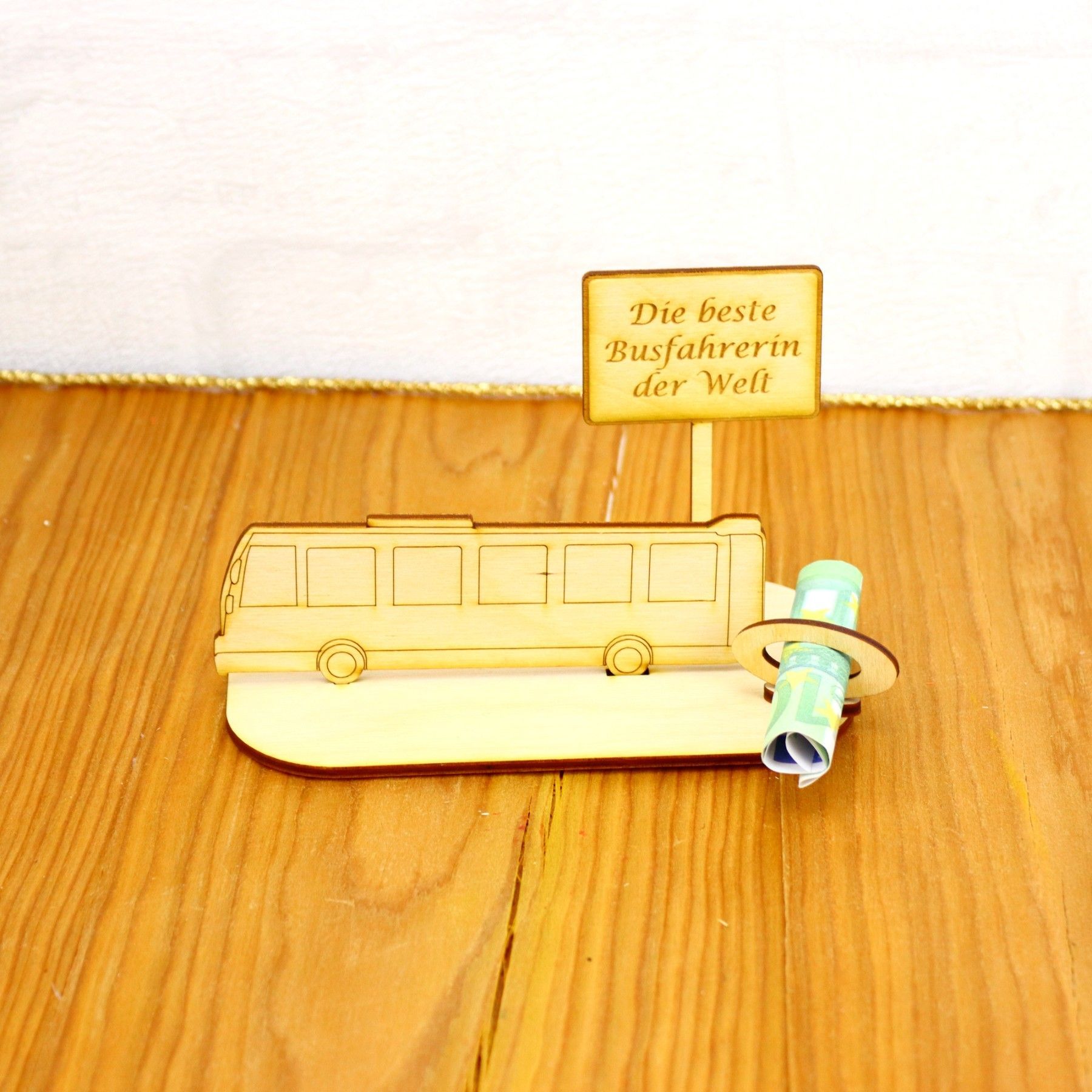 Busfahrer/ in Geburtstag Bus Geld- Gutscheingeschenk Holz- Personalisiert