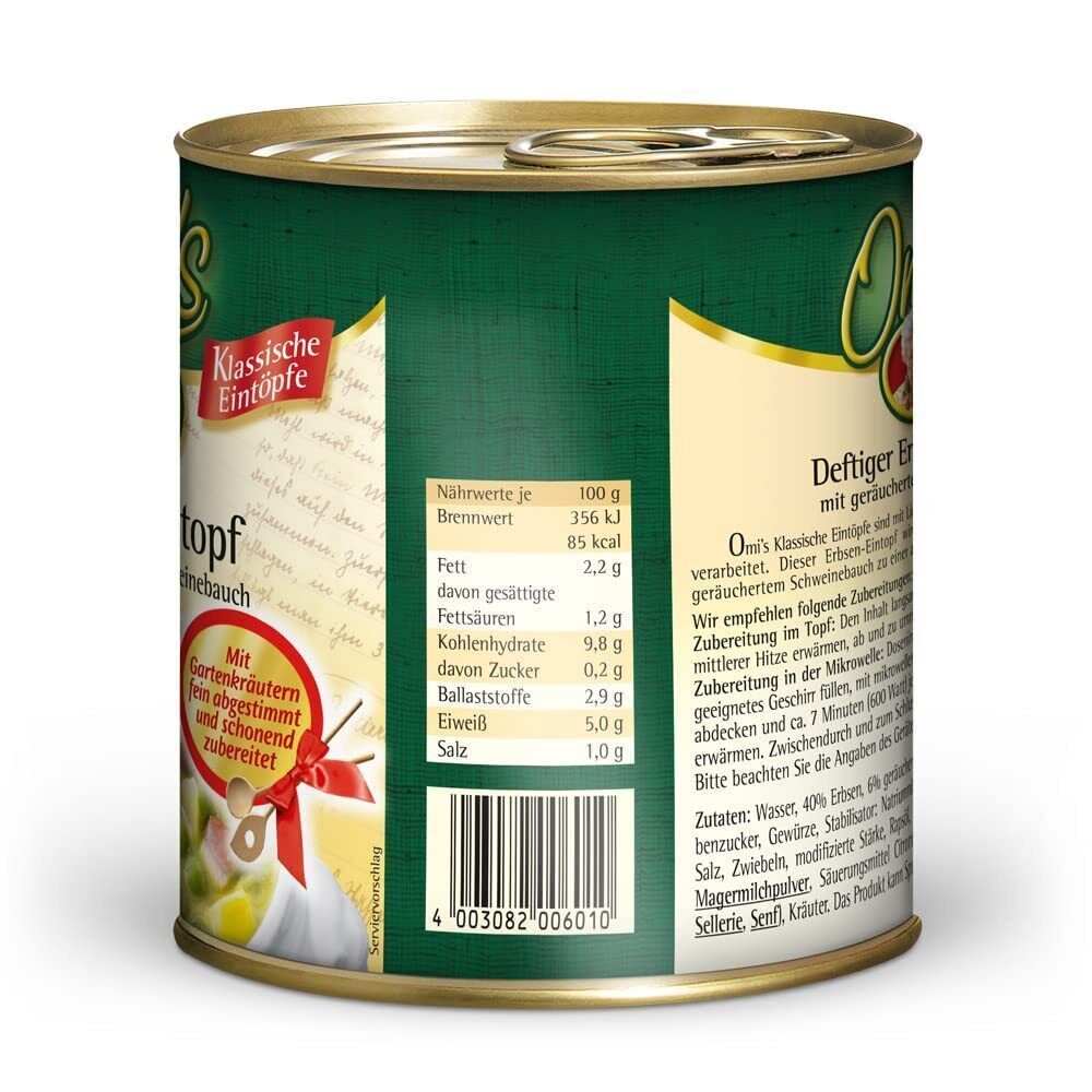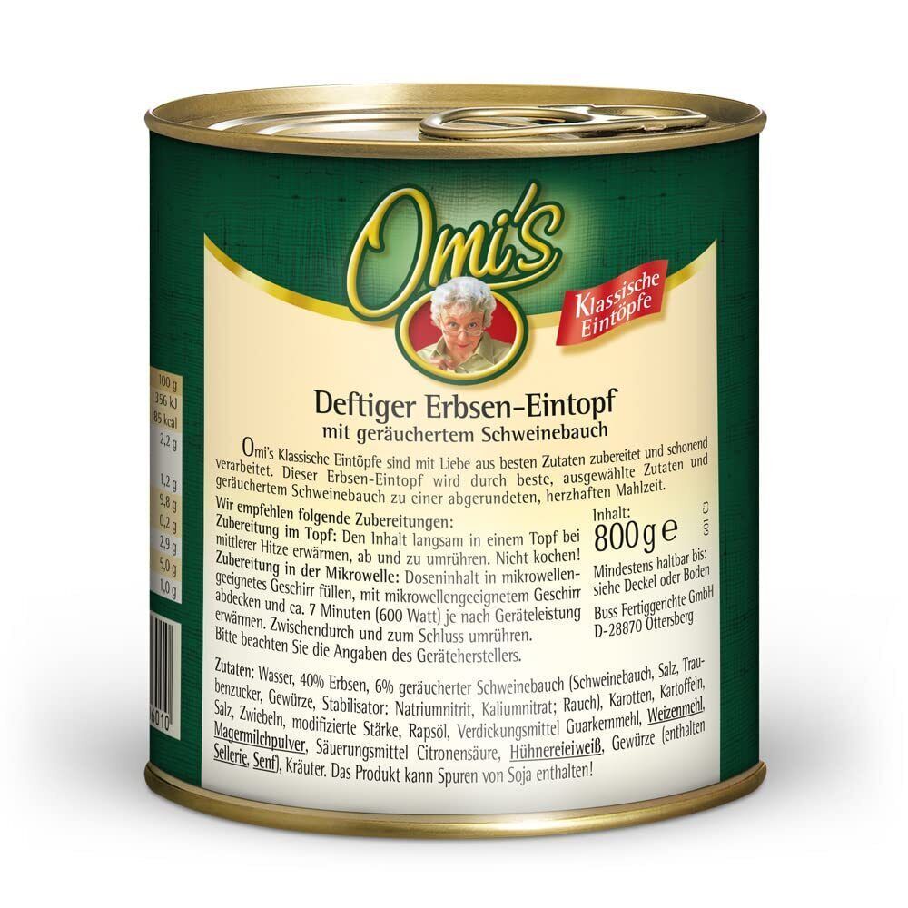 Buss Fertiggericht Omi�s Erbsensuppe Erbseneintopf Konserve 6er Pack 6 x 800g