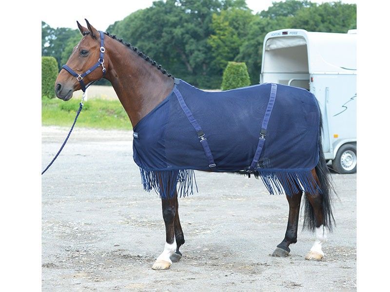 Busse Fliegendecke Fransen mit Kreuzbegurtung, Transport-Fliegendecke Fransen