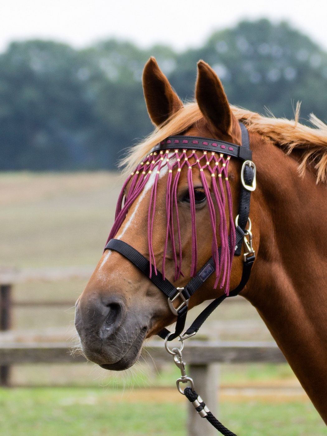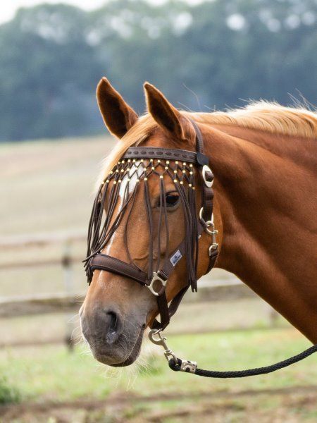 BUSSE Fliegenkordelband EXKLUSIV BU 633107 aus Leder mit Nylonfransen und Klettverschlüssen Fransen im oberen Bereich edel verbunden Stirnbandlänge: 38 - 43 cm, verstellbar Fransenlänge: 22 - 28 cm