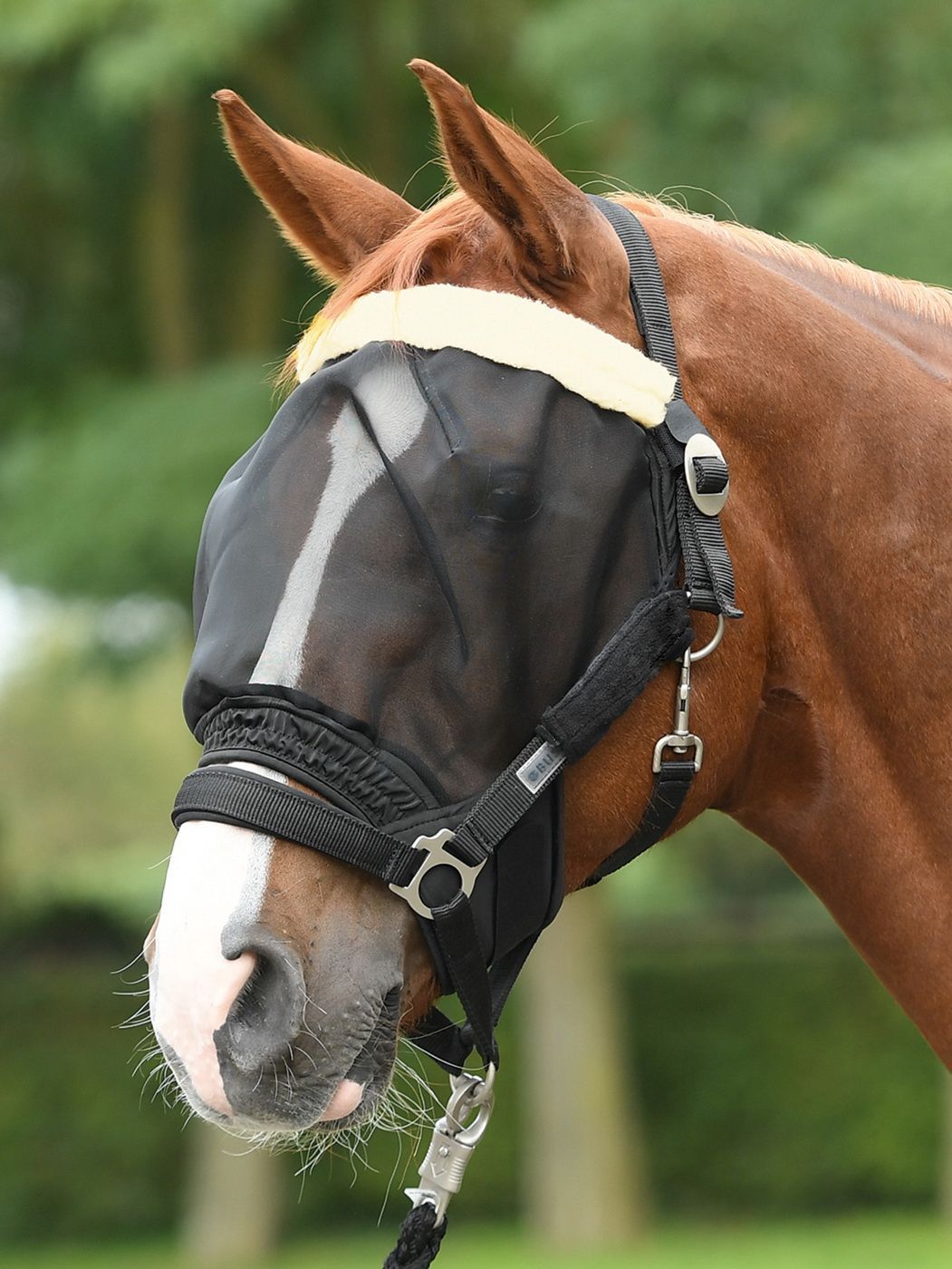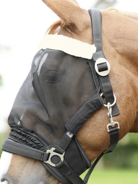 BUSSE Fliegenmaske COMBI BU 633030 passgenauer Augenschutz zur Fixierung am Halfter zeitsparendes Anlegen und Abnehmen parallel mit Auf- und Abhalftern großzügig gearbeiteter Augenschutz aus engmaschigen Netzgewebe mit umfangreichem Platz um die Augen weiches, hautfreundliches Kunstfell im Stirnabsc